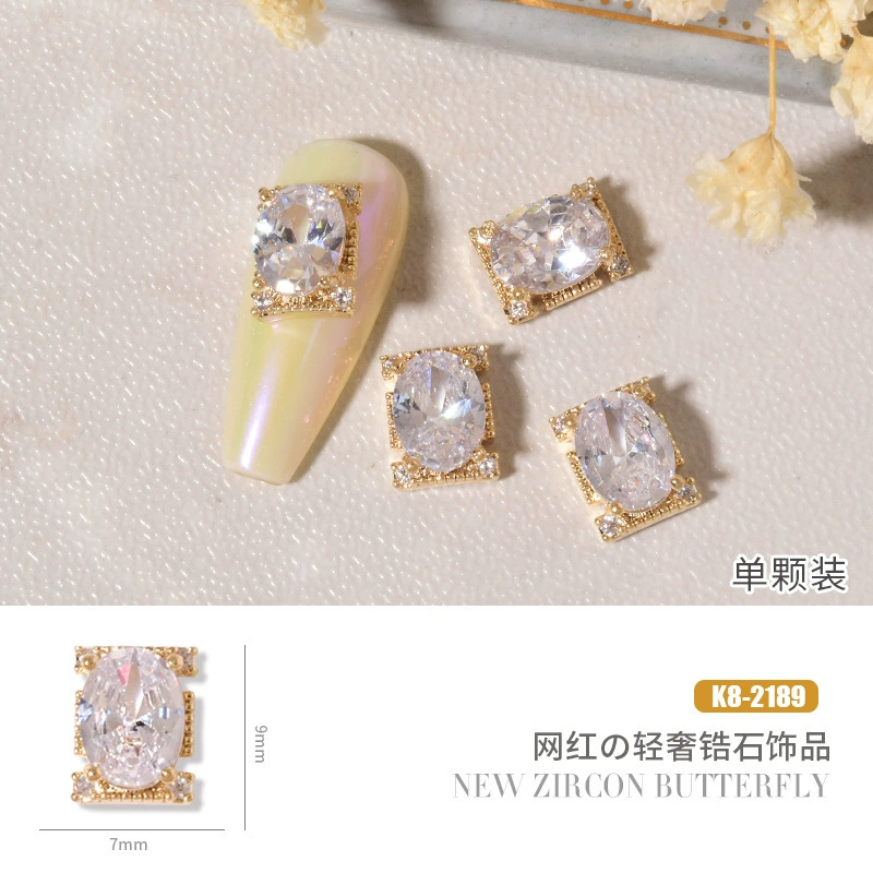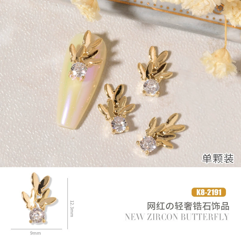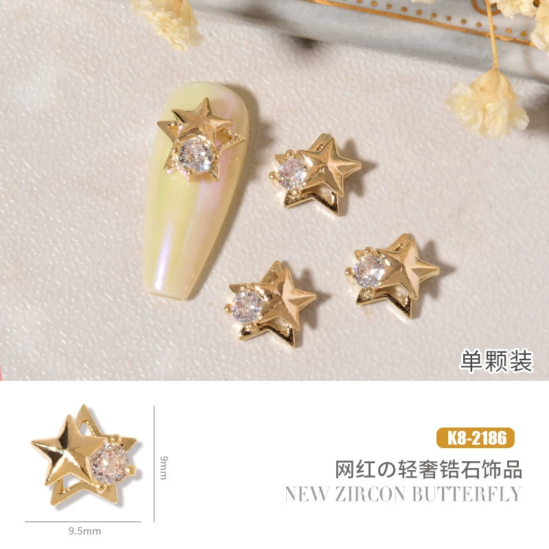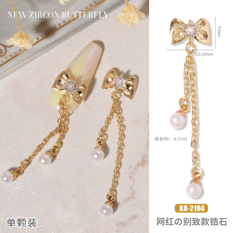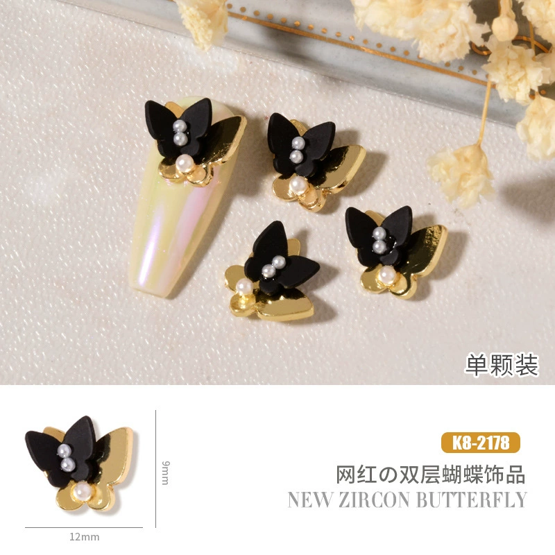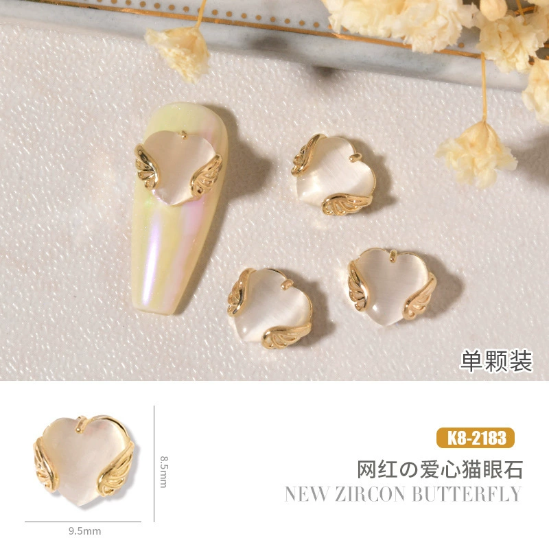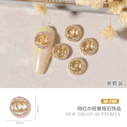 Double layer butterfly zircon heart chain nail art jewelry