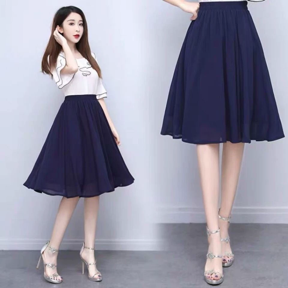 | nameOriginal | Double-layer chiffon skirt women's short summer high-waisted A-line skirt large size black drape umbrella skirt wide hem three-point skirt |