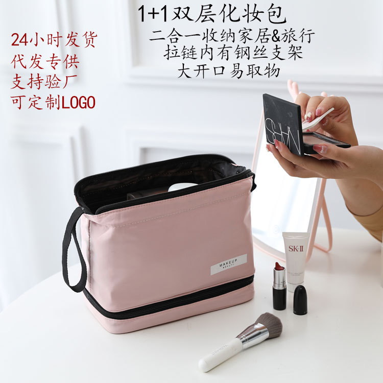 Double layer cosmetic bag a batch of large capacity pvc waterproof toilet bag travel cosmetics storage bag for women