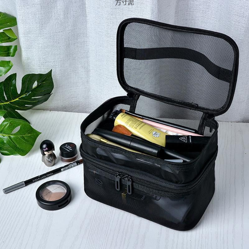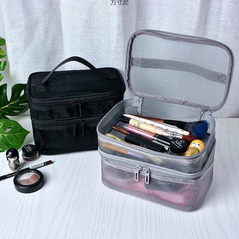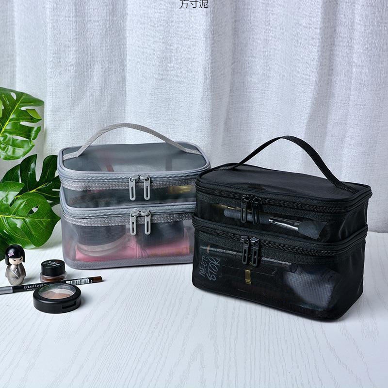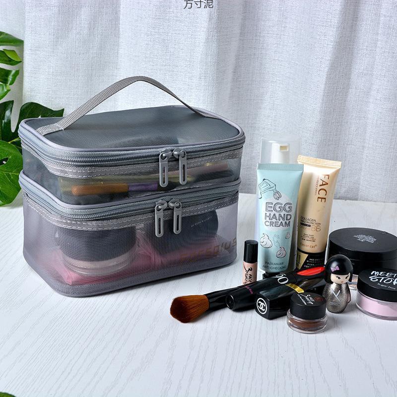 | nameOriginal | Double layer cosmetic bag nylon mesh yarn 2024 yarn transparent portable large capacity storage bag simple wash bag factory |