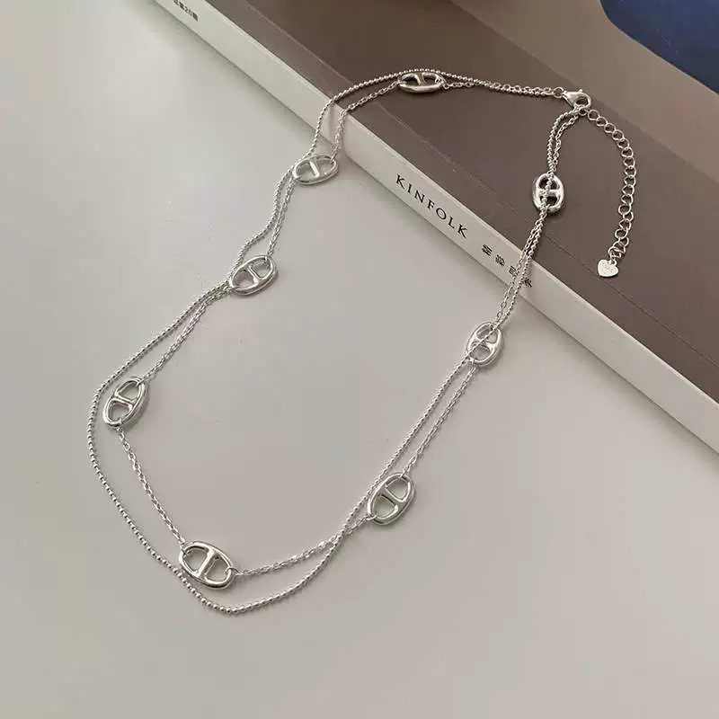 | nameOriginal | Double layer geometric pig nose necklace women's simple fashion creative S925 silver clavicle chain ins niche versatile necklace |