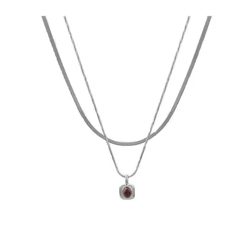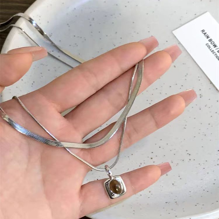 Double-layer Tiger’s Eye Pendant Necklace Women’s Simple Daily All-match Style Design Sense Student’s Trendy Clavicle Chain