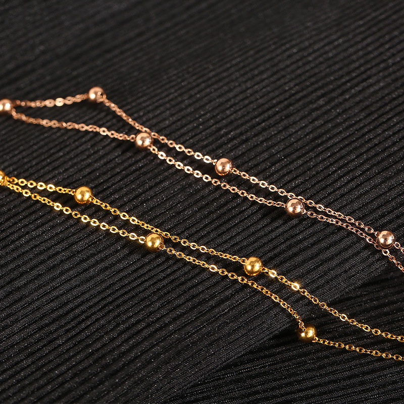| nameOriginal | Double layer transfer bead anklet women's 2024 new fashion 18k gold high-end feeling ins niche titanium steel foot chain women do not fade |