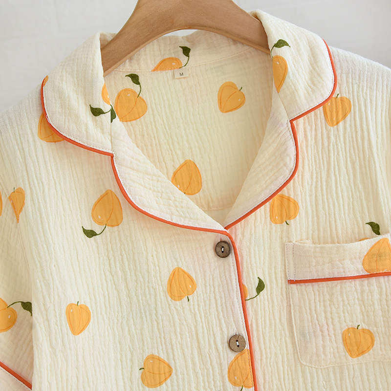 | nameOriginal | Double-Layer Yarn Pajamas Three-Piece Set Women's Cotton Soft Cotton Yarn Summer Thin Short-Sleeved Shorts Trousers Summer Cotton Home |