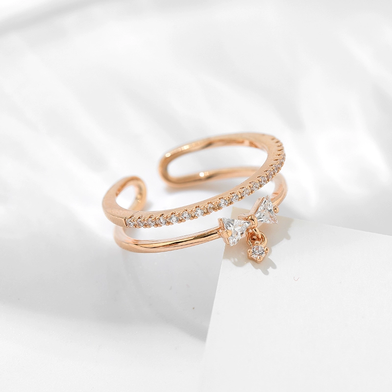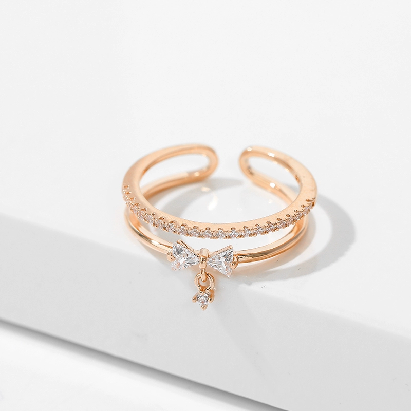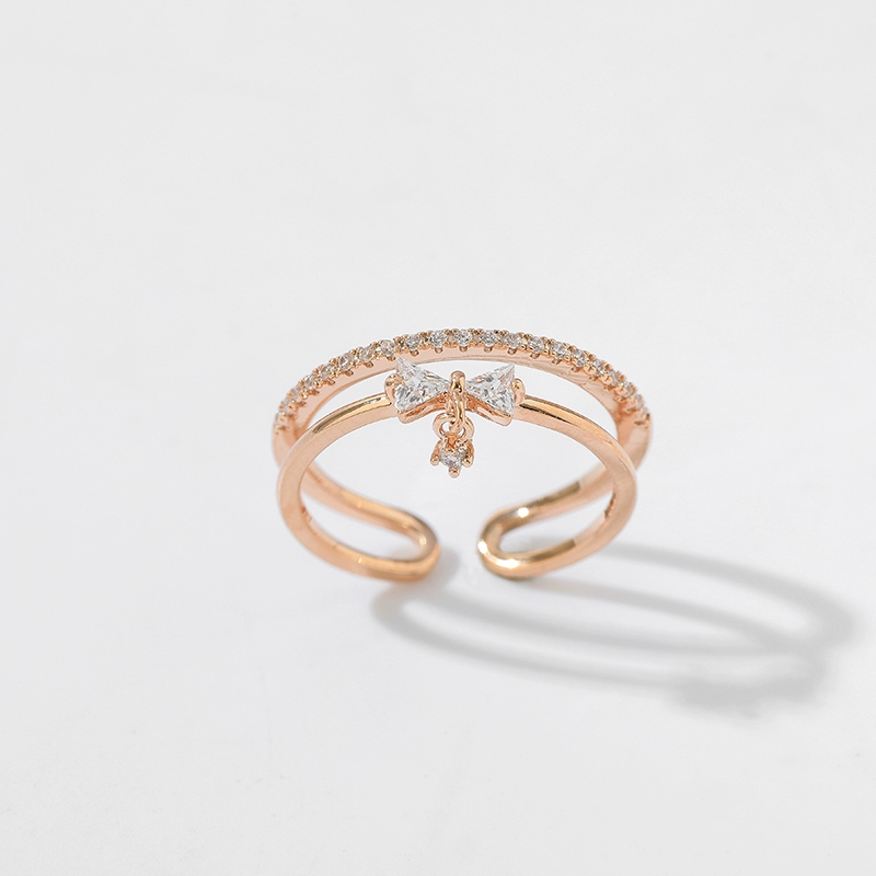 | nameOriginal | Double-layered bow ring for women, personalized design, rhinestone index finger ring, simple, light and luxurious niche, adjustable open ring |