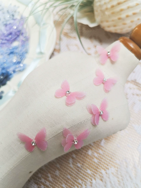 | nameOriginal | Double-layered butterfly with diamonds, mini tulle manicure butterfly, diy earring accessories, antique jewelry material, doll decoration |