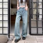 nameOriginal | Double Pocket Design Sense Loose Wide Leg Long Pants Summer New Women's Retro Style White Washed Jeans |