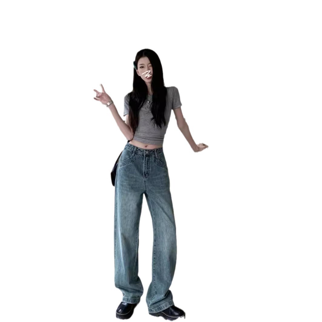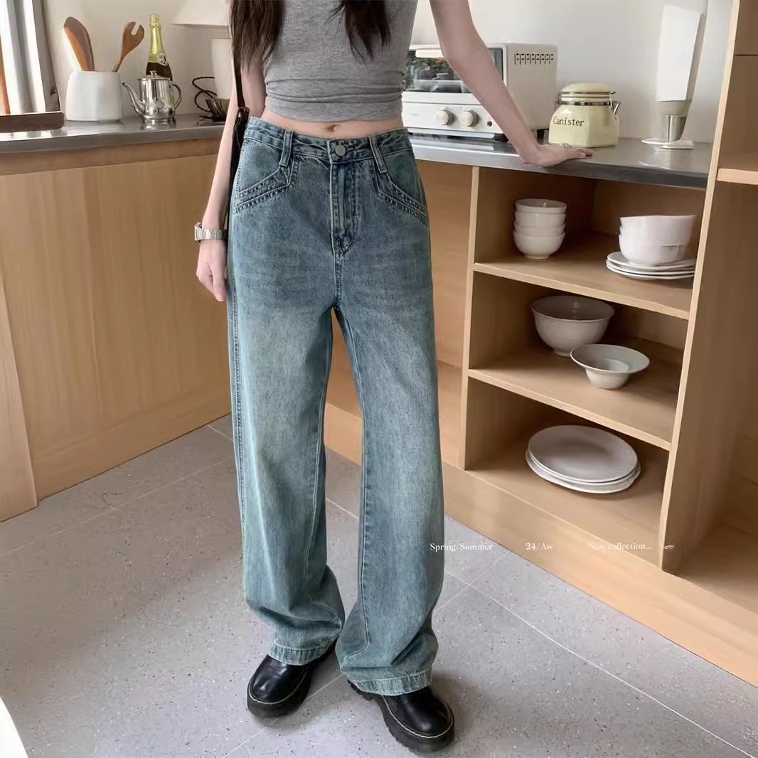 | nameOriginal | Double Pocket Design Sense Loose Wide Leg Long Pants Summer New Women's Retro Style White Washed Jeans |