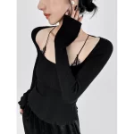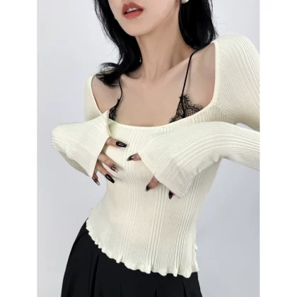 DOUBLE pure desire knitted sweater with square neck and fungus lace