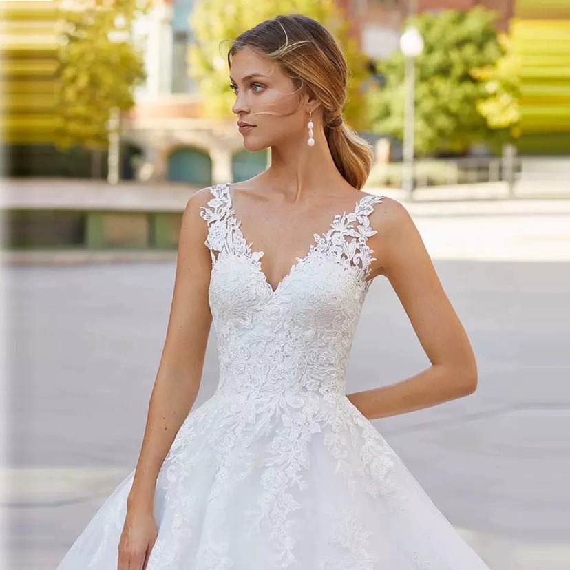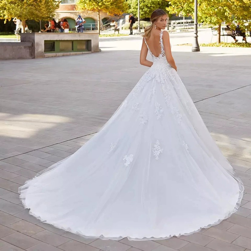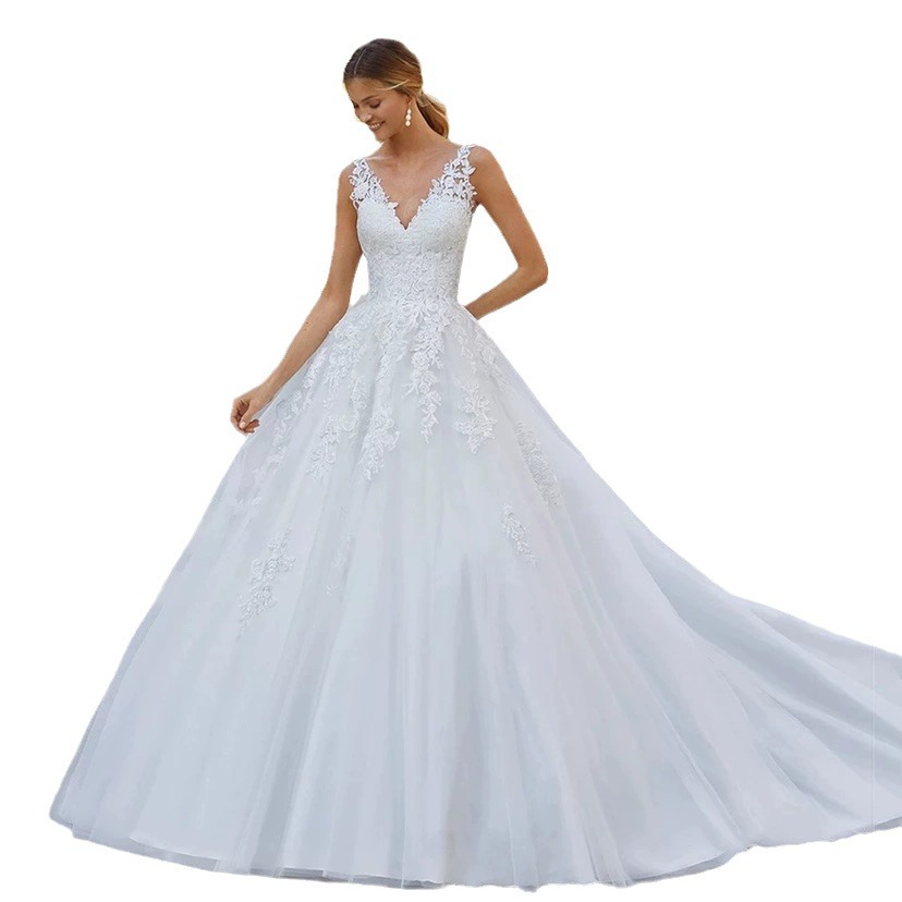| nameOriginal | Double shoulder wedding dress Mori 2024 new bridal simple deep V-neck slim-fit perspective travel shot large tail soft yarn slimming |