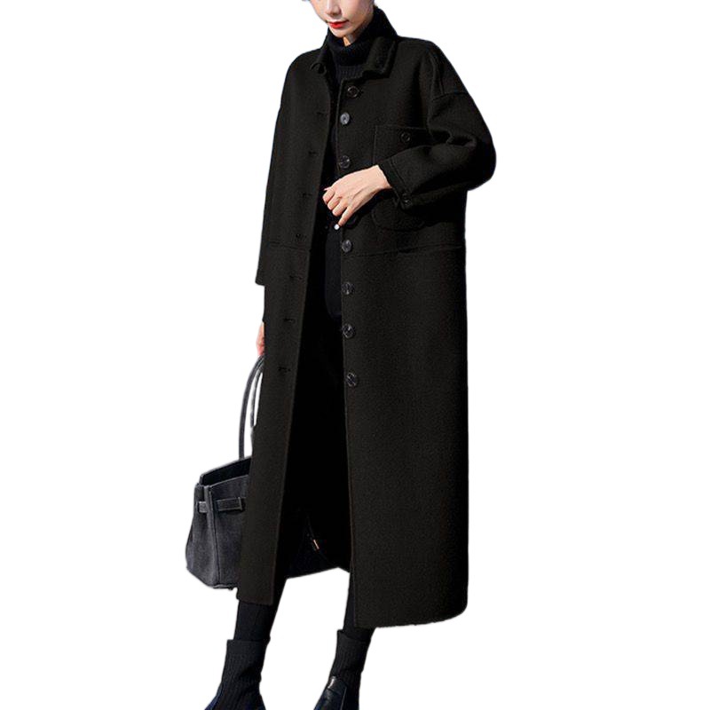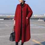 Double-sided cashmere coat for women plus size chubby girl woolen coat mid-length loose wine red temperament high