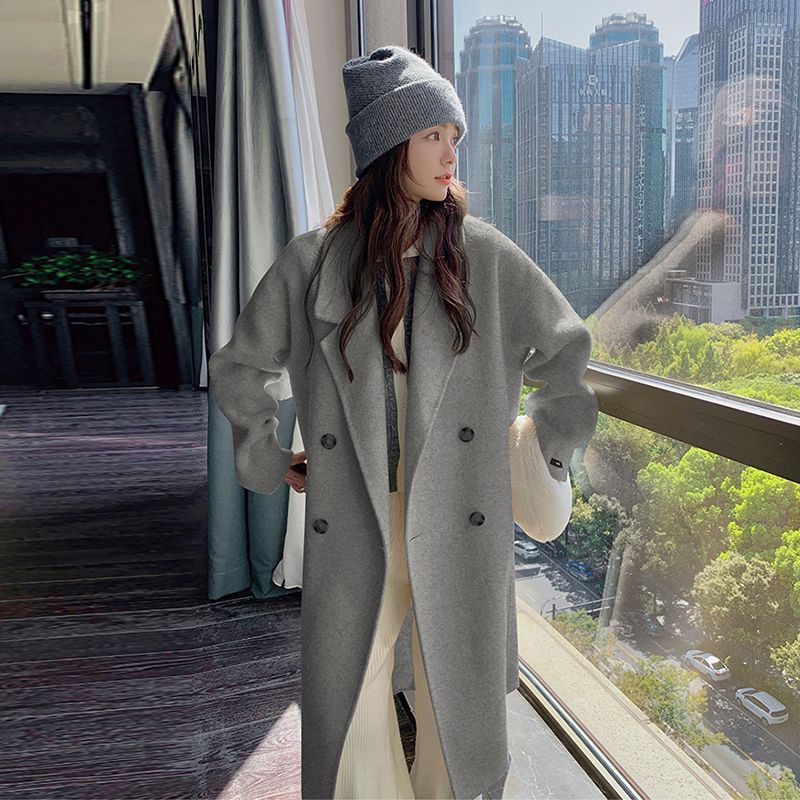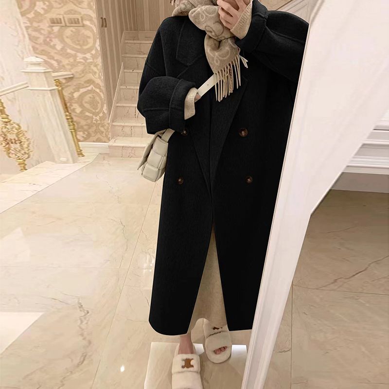 Double-sided cashmere coat Women's Mid-length 2023 autumn and winter New Hepburn style small wool woolen coat