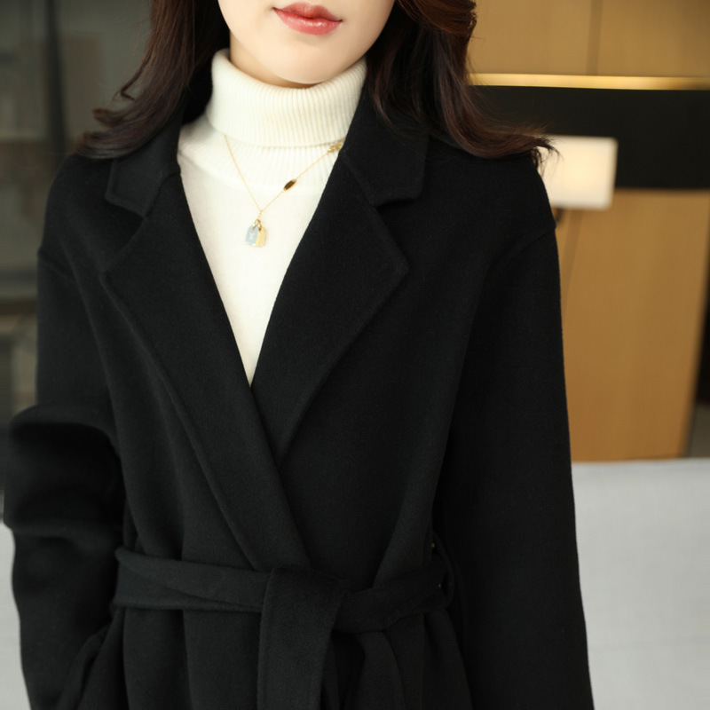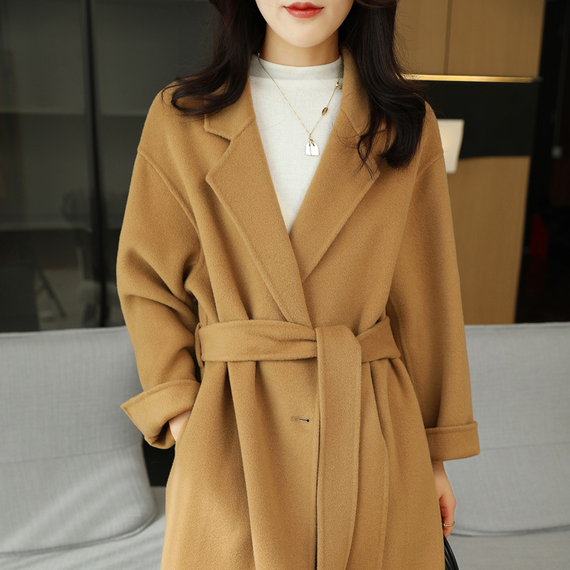 | nameOriginal | Double-sided cashmere coat Women's Mid-length suit collar autumn and winter Korean style belt Hepburn style small woolen coat |