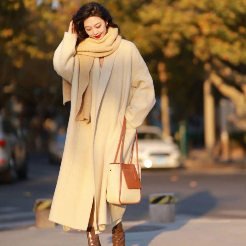 | nameOriginal | Double-sided cashmere overcoat women's long 2023 Advanced loose tall soft glutinous woolen coat autumn and winter |