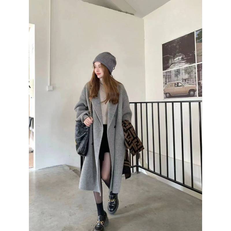 | nameOriginal | Double-sided cashmere overcoat women's pink mid-length autumn and winter small thick woolen long woolen coat Hepburn style |