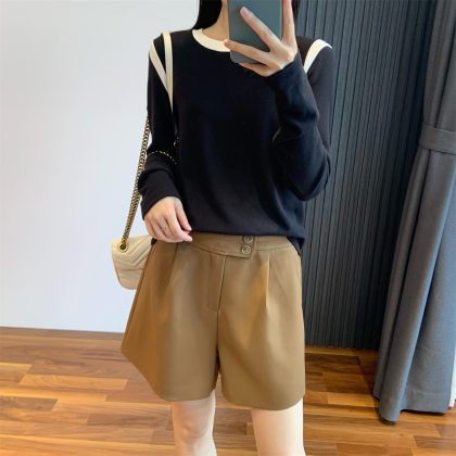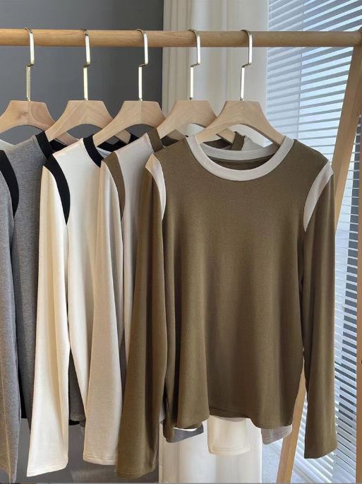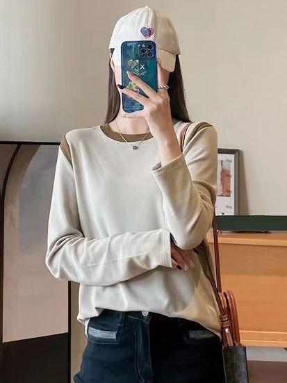 | nameOriginal | Double-sided cashmere stitching long-sleeved women's autumn and winter contrast color slim-fit slimming bottoming shirt outer wear inner wear plus size bottoming shirt |