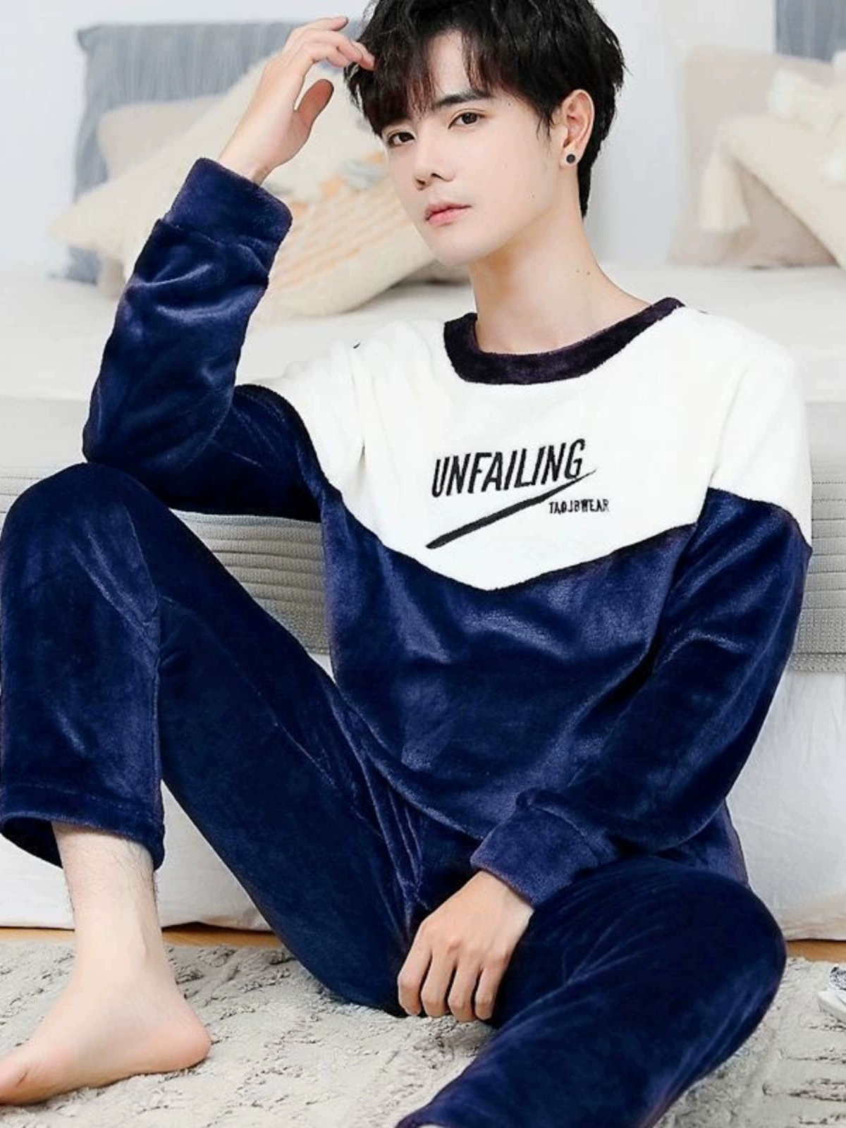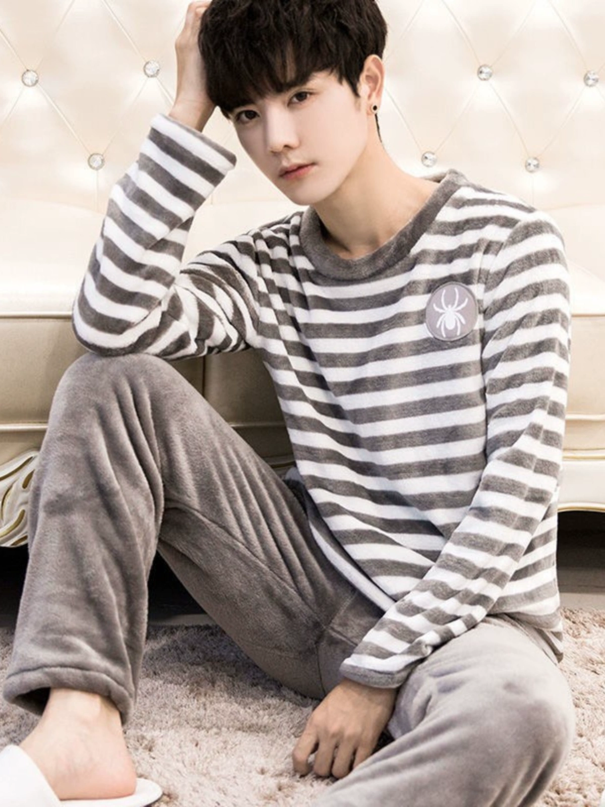 | nameOriginal | Double-sided coral velvet pajamas for men in autumn and winter plus velvet and thickened cartoon youth flannel home clothes set |