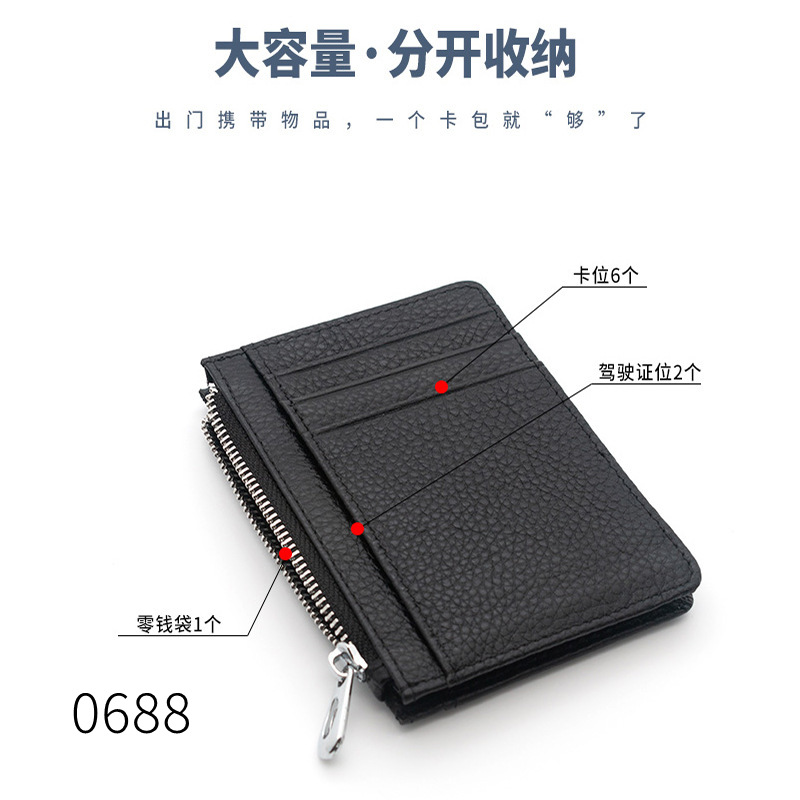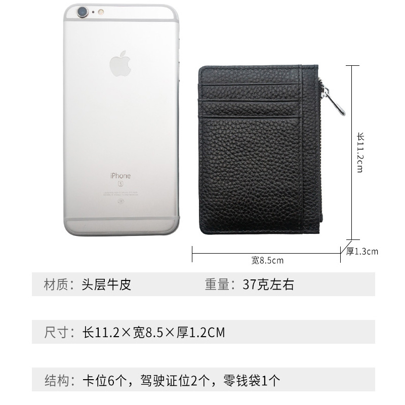 Double-sided Driver’s License Multi-card Holder Genuine Leather Zipper Card Holder Top Layer Cowhide Men’s Thickened Light Luxury Women’s Small Coin Purse Case
