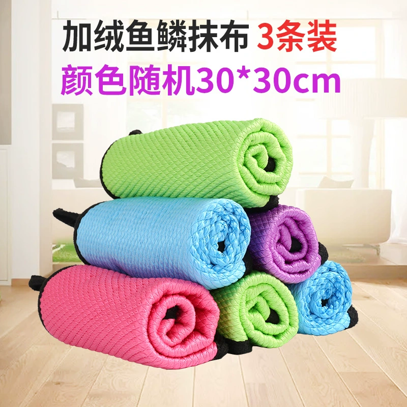 Double -sided fish scale rag house special kitchen dedicated water absorption without hair hair wipe the glass table easy cleaning and cleaning towels