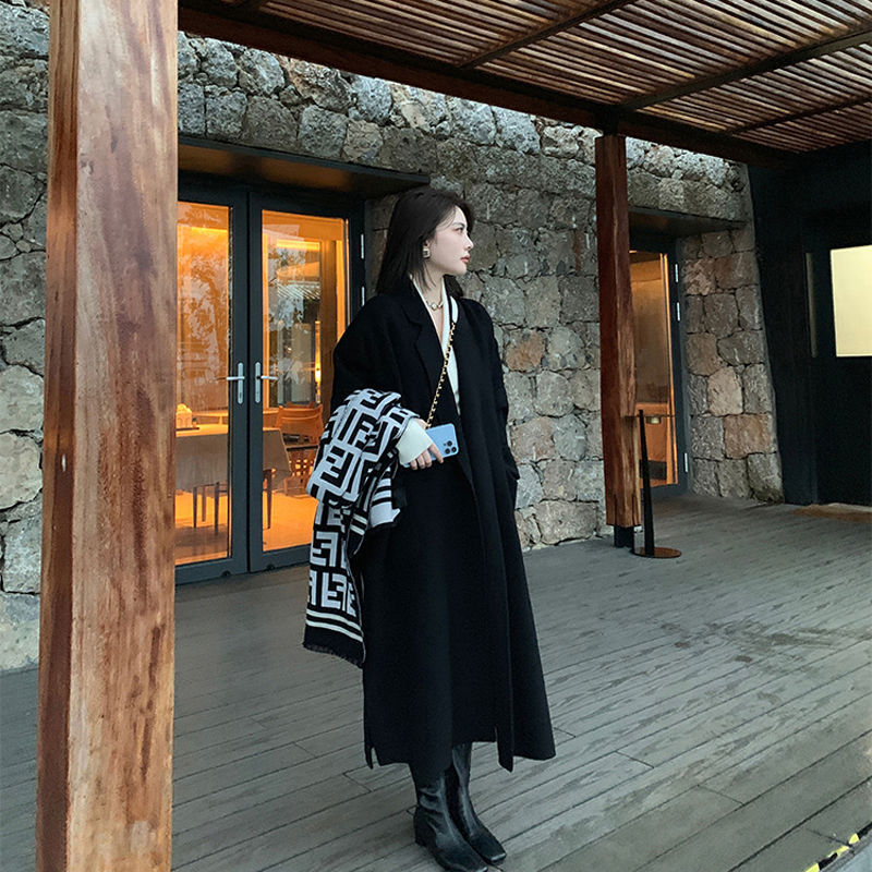 | nameOriginal | Double-sided Fleece Wool Coat Women's Autumn and Winter Mid-length Hepburn Style Bathrobe Small Side Slit Woolen Coat |