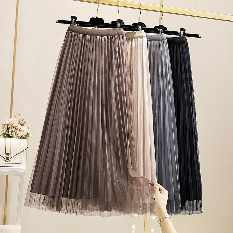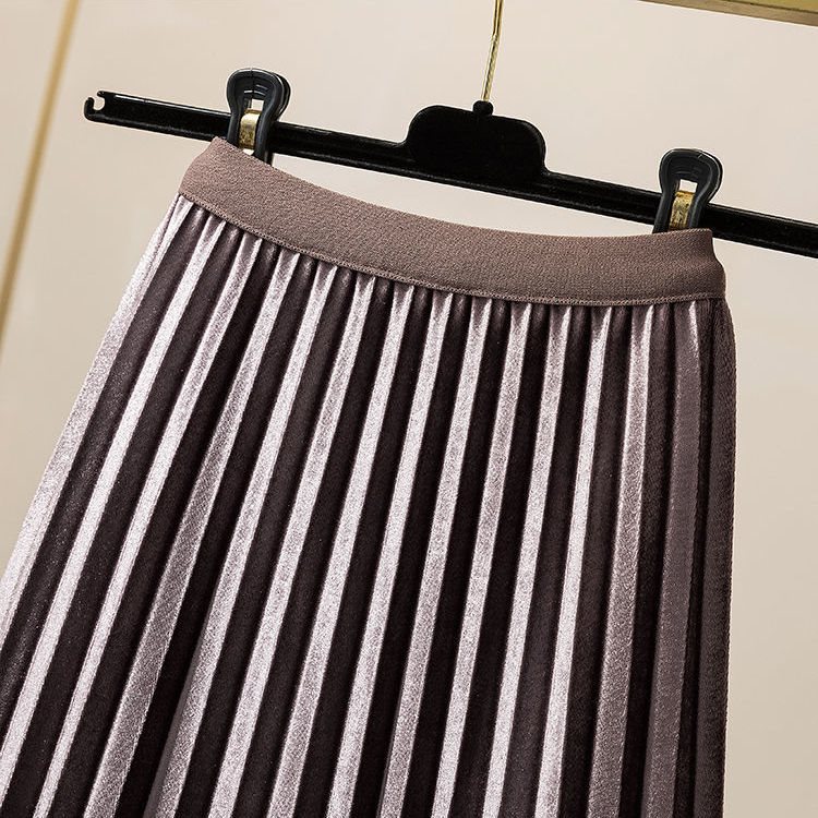 | nameOriginal | Double-sided Gold Velvet Skirt Spring and Autumn Women's High Waist Mid-length A- line Skirt Slimming Elegant Mesh Pleated Skirt |