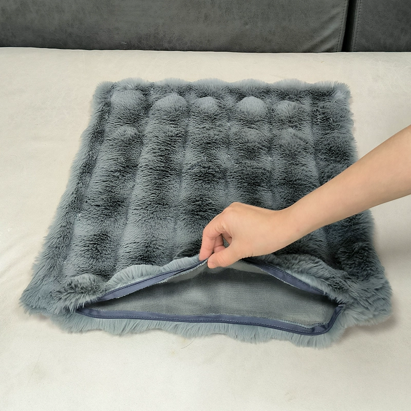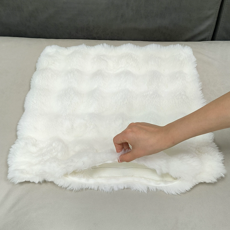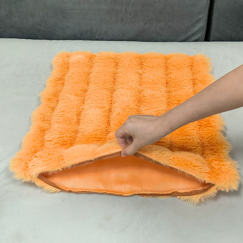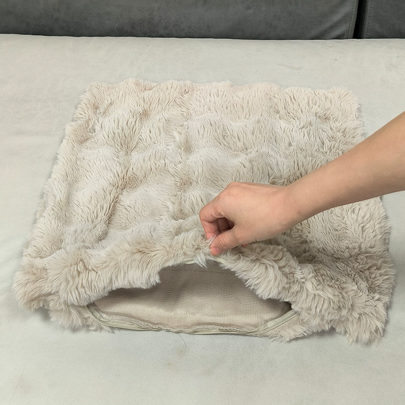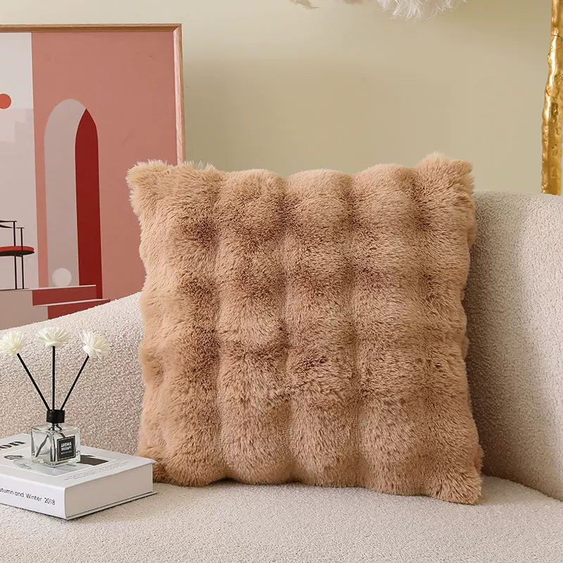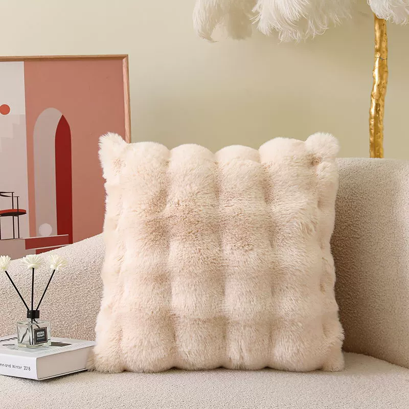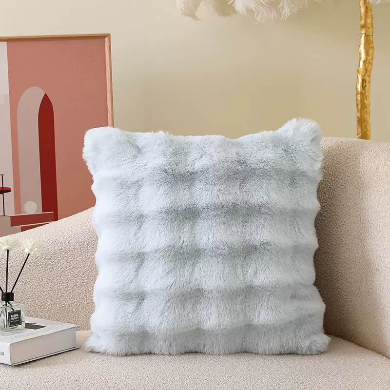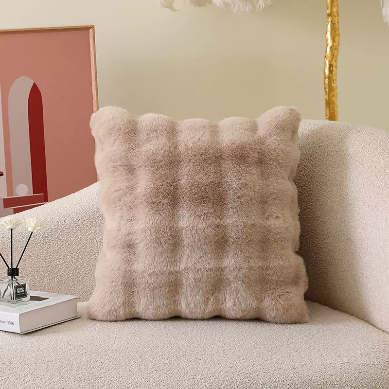 Double-sided imitation rabbit plush pillow, light luxury cushion, backrest, living room sofa pillow, pillowcase without core, high-end appearance