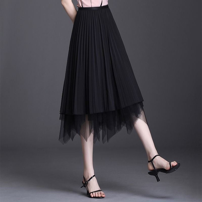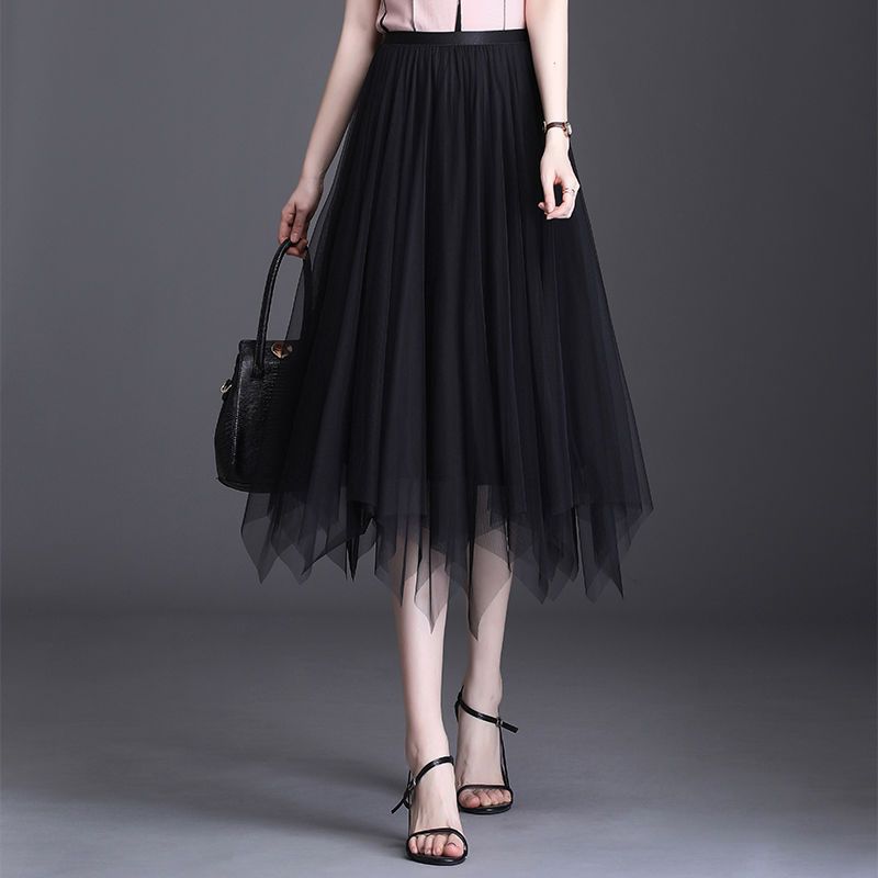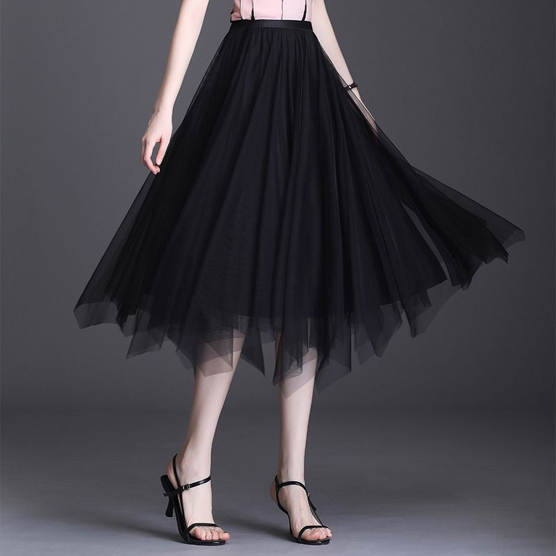 | nameOriginal | Double-sided Irregular Mesh Skirt Women's Summer Mid-length Puffy Pleated Skirt High Waist Slimming Skirt |