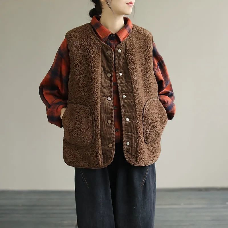 | nameOriginal | Double-sided lamb fur vest for women autumn and winter 2023 new artistic loose sleeveless corduroy two-way coat |
