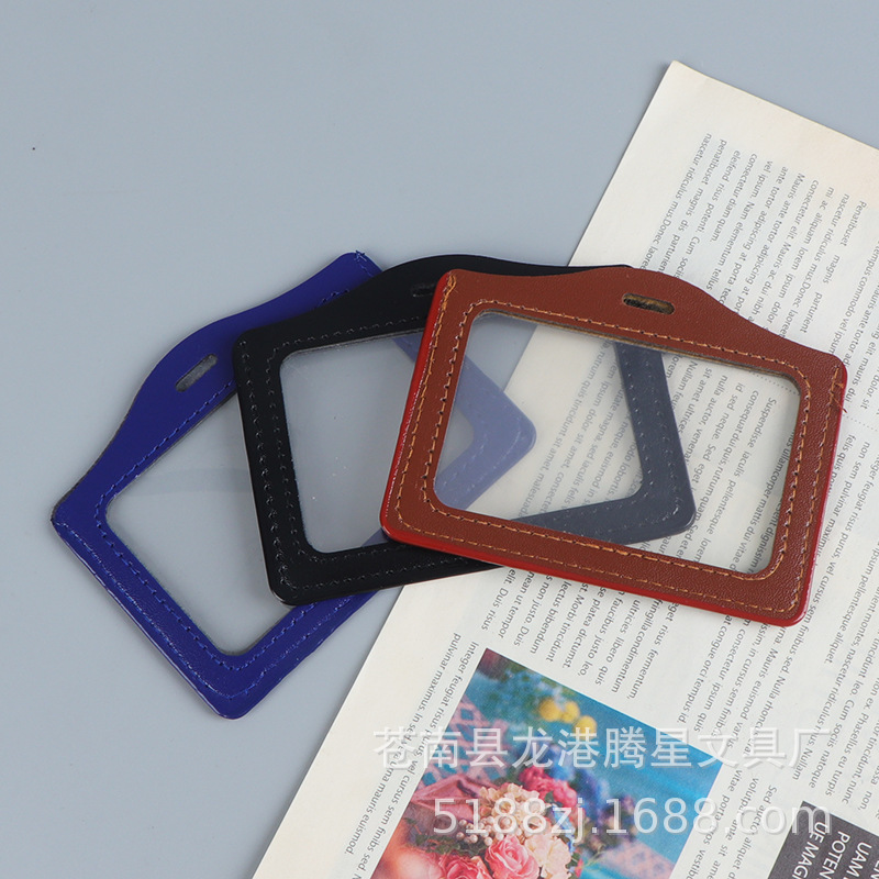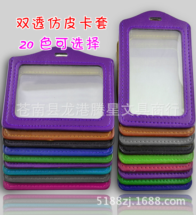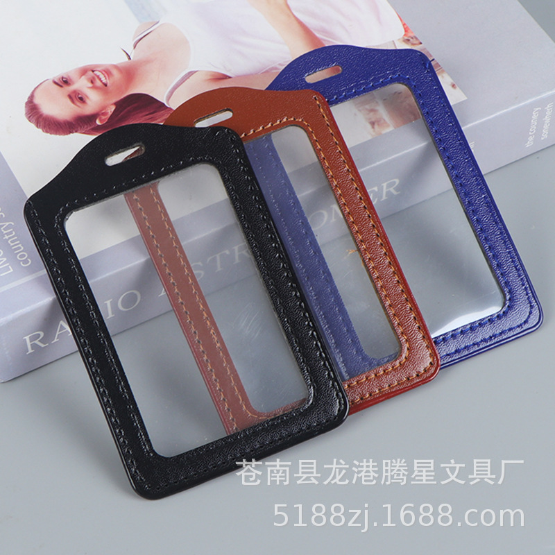 Double-sided Transparent Leather Card Cover Certificate Brand Transparent Card Cover Lanyard Student Identity Card Work Card Bus Card School Card
