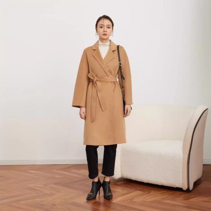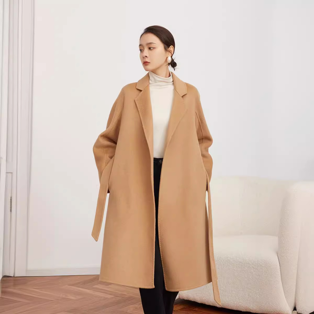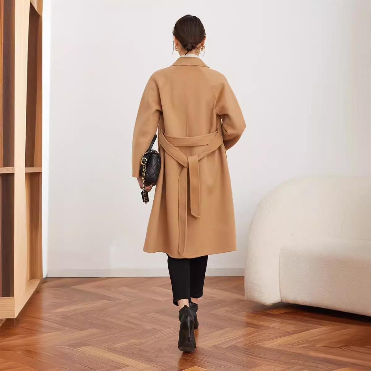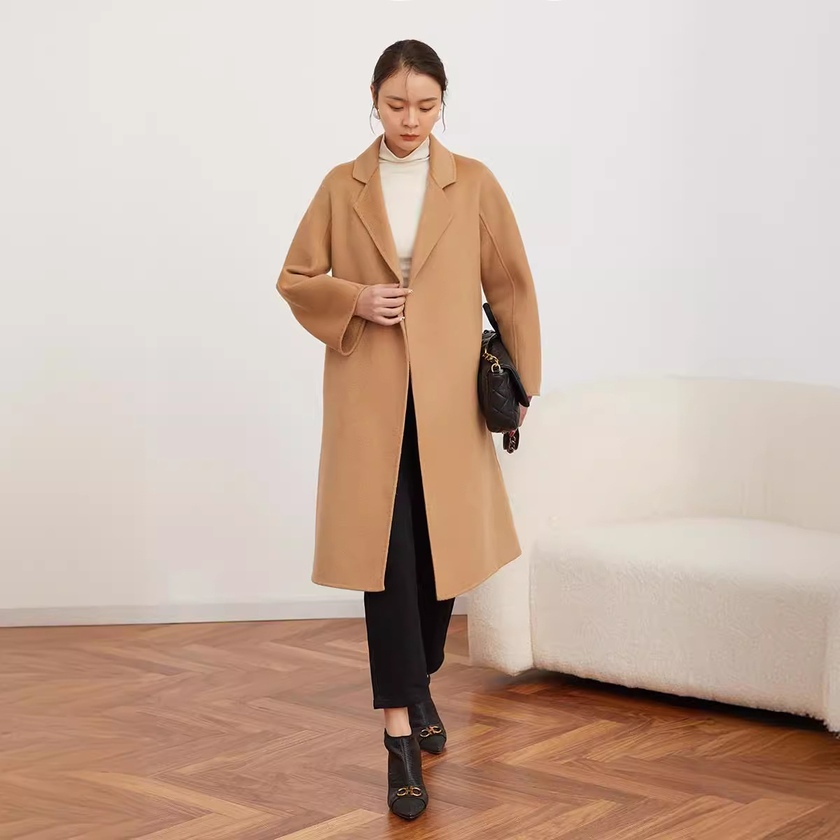 | nameOriginal | Double-sided Tweed Knee-length Cashmere Coat Women's Autumn and Winter Water Ripple Mid-length Tight Waist Profile Wool Coat |