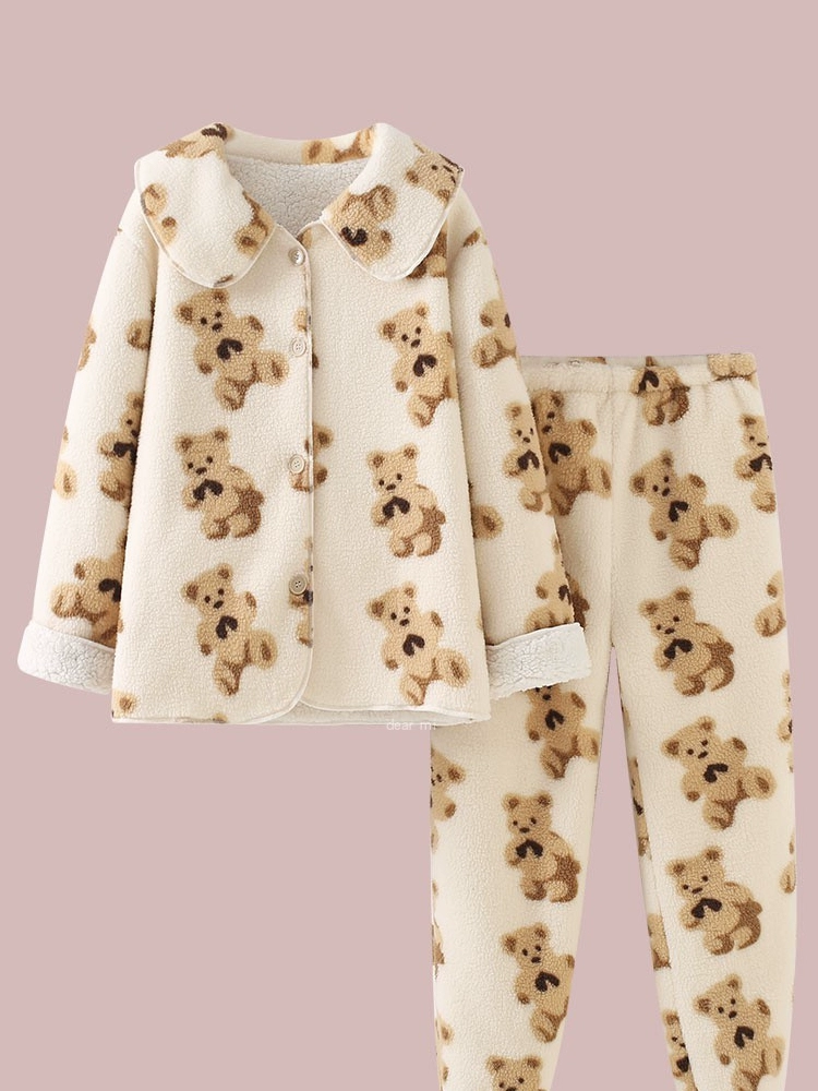 Double-sided velvet! Double warm pajamas for women in autumn and winter coral velvet cute bears thickened lamb velvet home clothes
