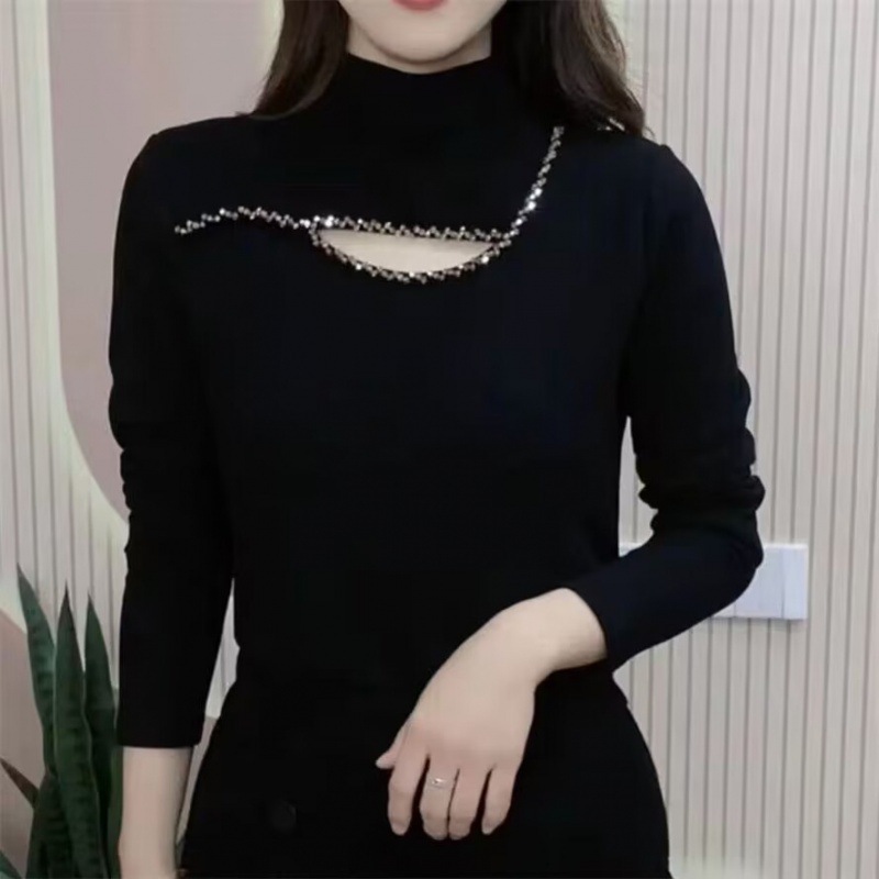 | nameOriginal | Double-sided velvet warm bottoming shirt 2024 Spring and Autumn new hot rhinestone elegant slim fit western style spring and autumn T-shirt small shirt |