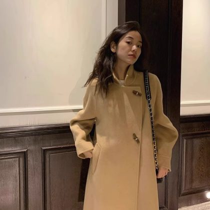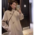 | nameOriginal | Double-sided wool coat long lantern sleeve stand collar horn buckle plush thickened warm cashmere double-sided coat for women |