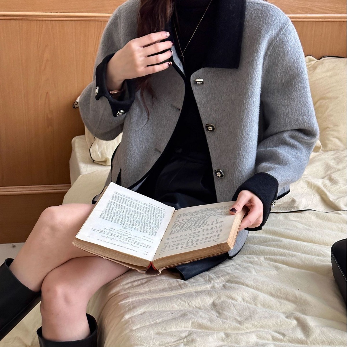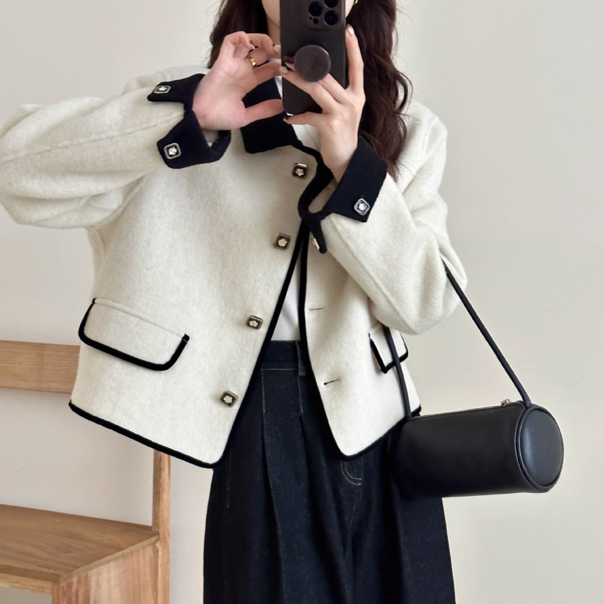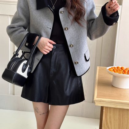 Double-sided wool coat small doll collar contrast color bag side single-breasted H-style commuter cashmere double-sided coat
