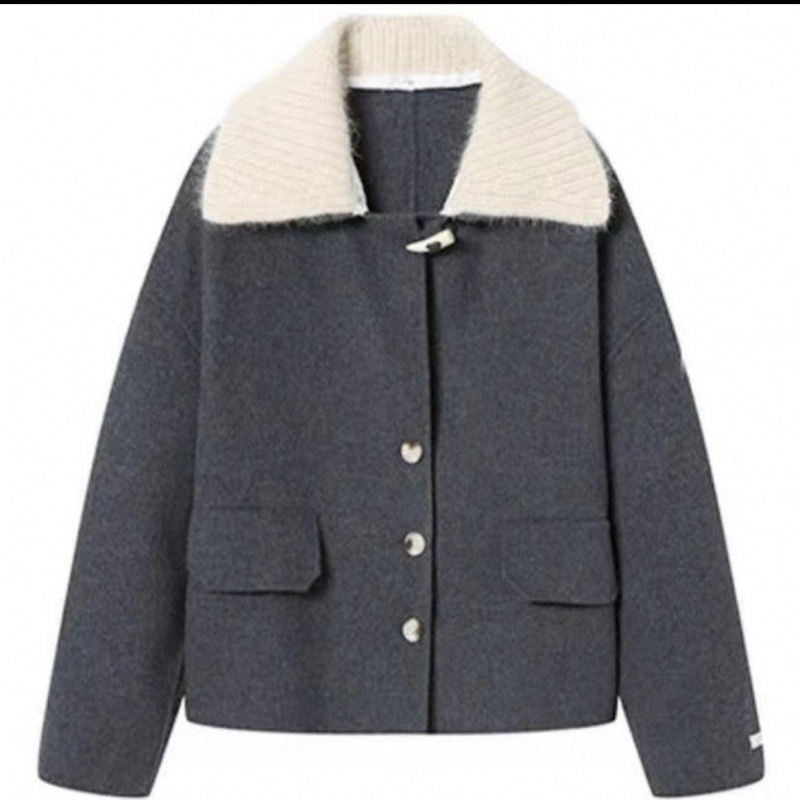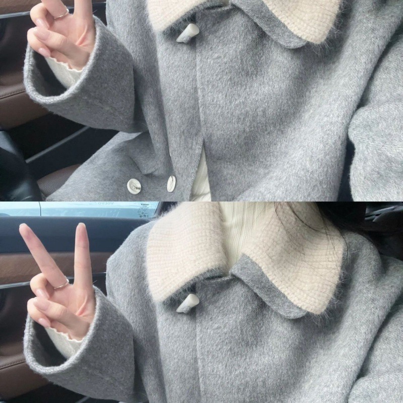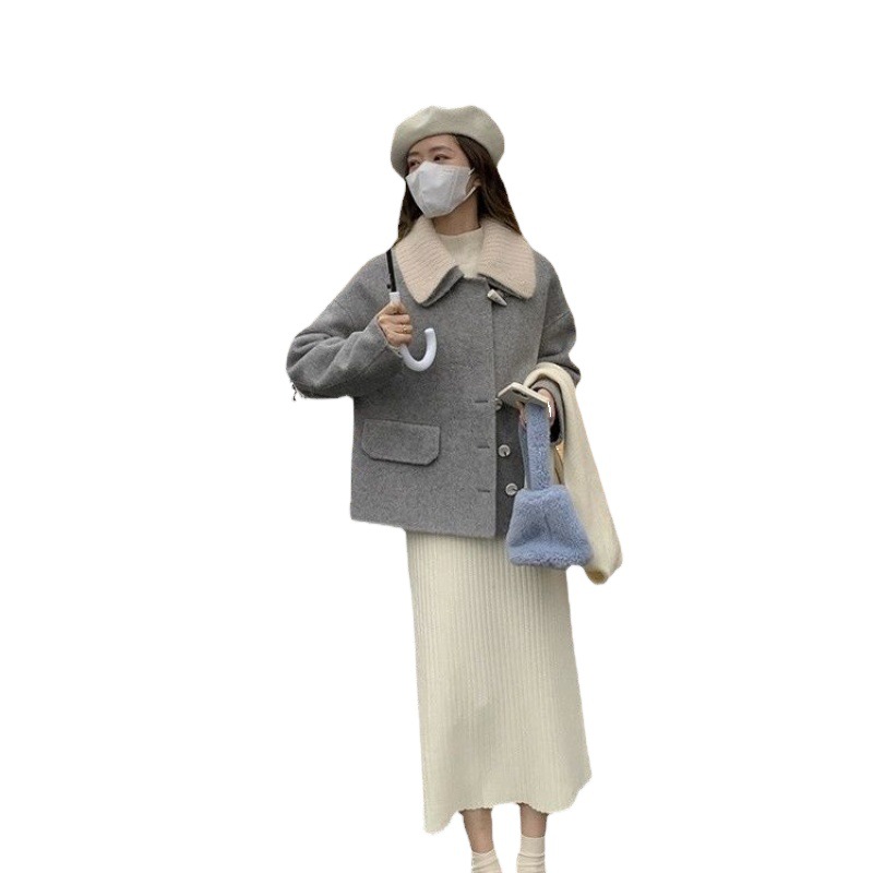Double-sided wool coat women’s short 2023 autumn and winter New detachable knitted collar small Korean style woolen coat