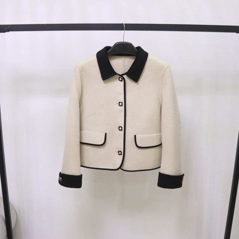 | nameOriginal | Double-sided wool coat women's short Chanel style wool Korean style contrast color stitching age-reducing casual temperament woolen coat |