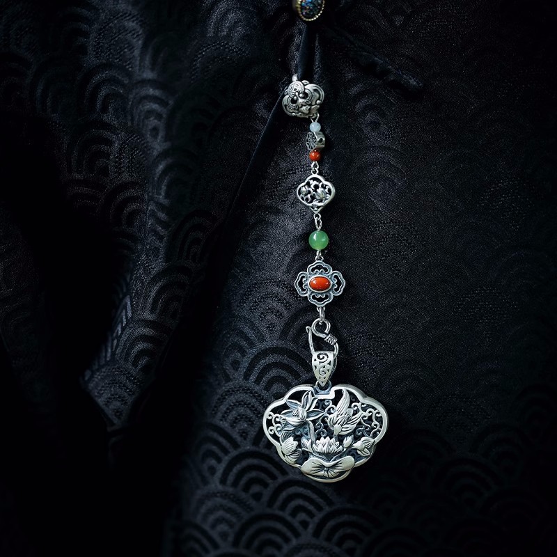 Double Sisters Cheongsam Flap Pendant Pendant Pendant Buckle Pendant Pendant Antique Vintage Lotus Leaf Tian Tian Decorative Tang Suit Placket Tea Suit