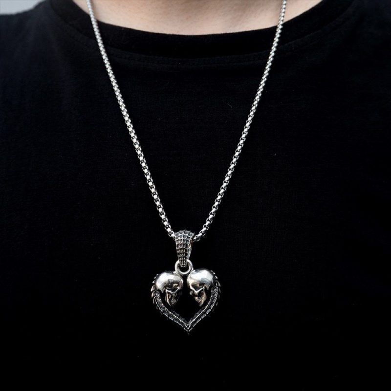 | nameOriginal | Double Skull Heart Pendant S925 Sterling Silver European and American Street Dark Fashion Gothic Pendant Men's Valentine's Day Gift |