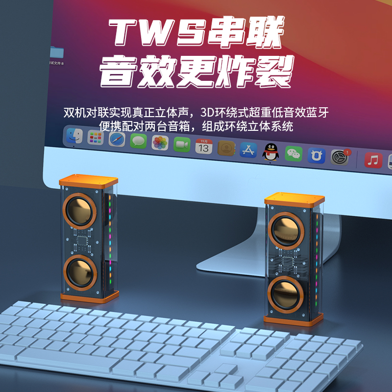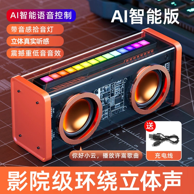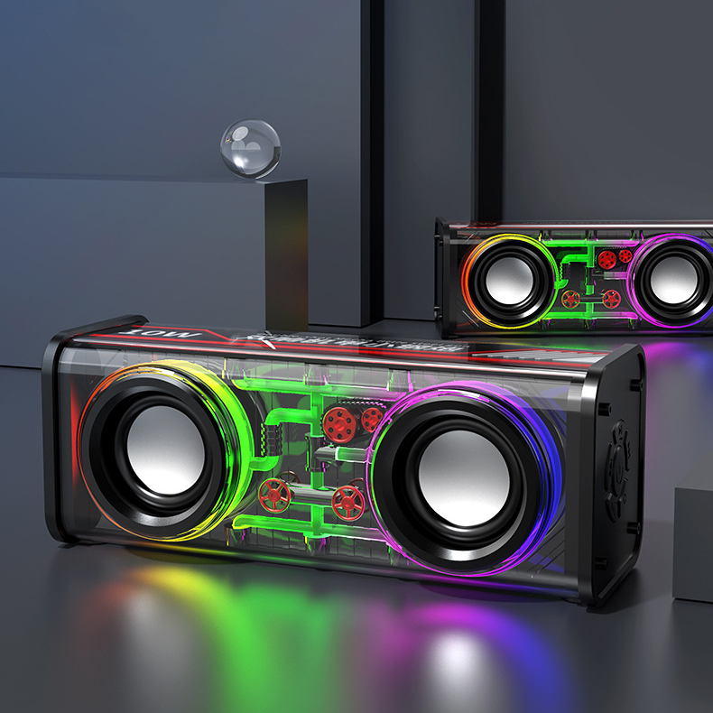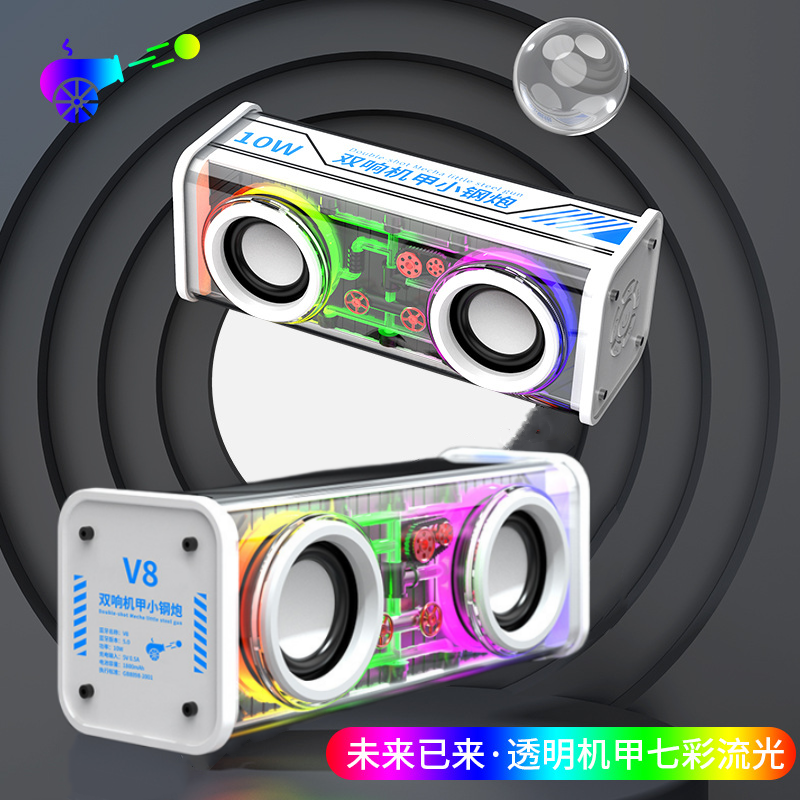 | nameOriginal | Double speaker transparent mecha bluetooth speaker small steel cannon |