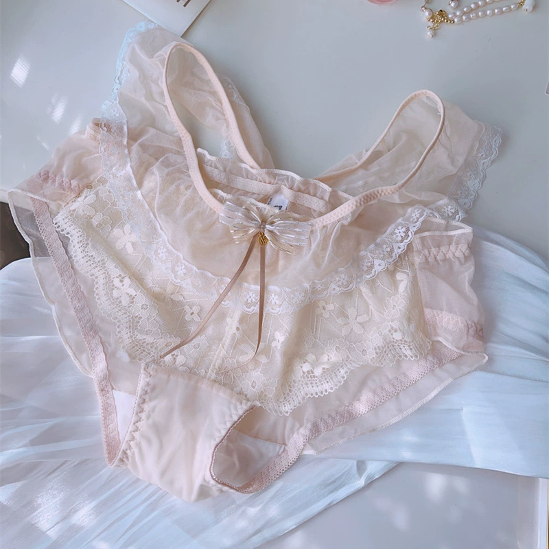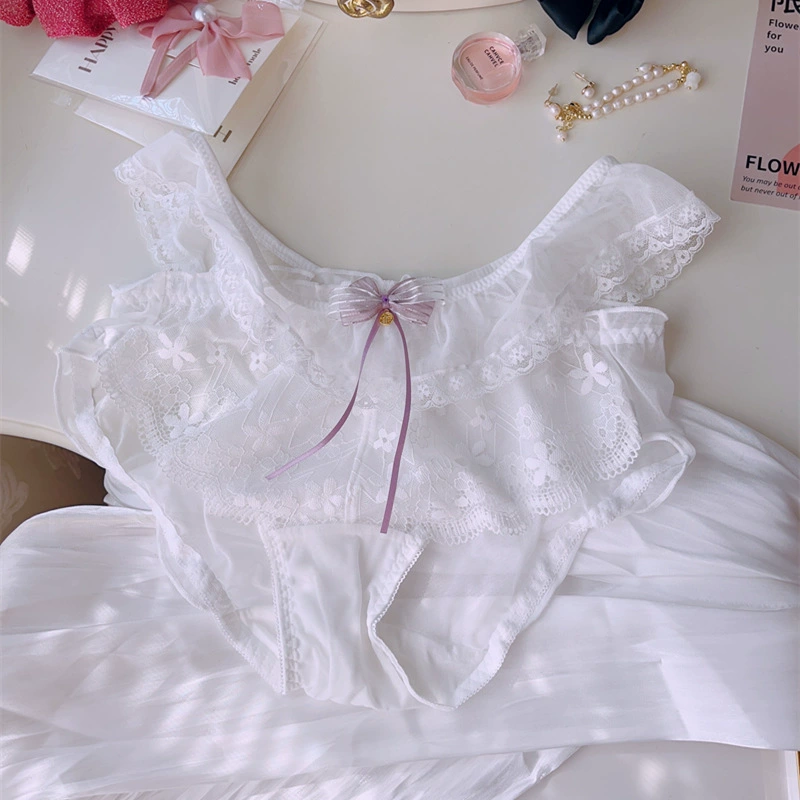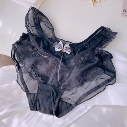 Double thin straps with empty small sexy sweet lace gauze girl panties large size bow loli Japanese briefs