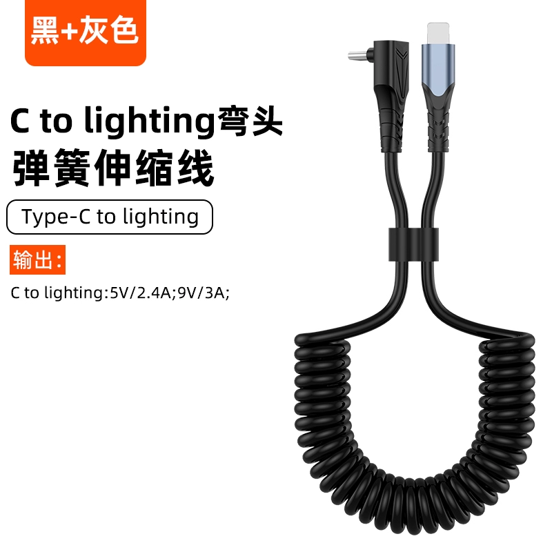 | nameOriginal | Double type c elbow to lightning spring telescopic car carplay data cable suitable for Huawei Apple iPhone navigation carlife screen projection PD fast charging cable |