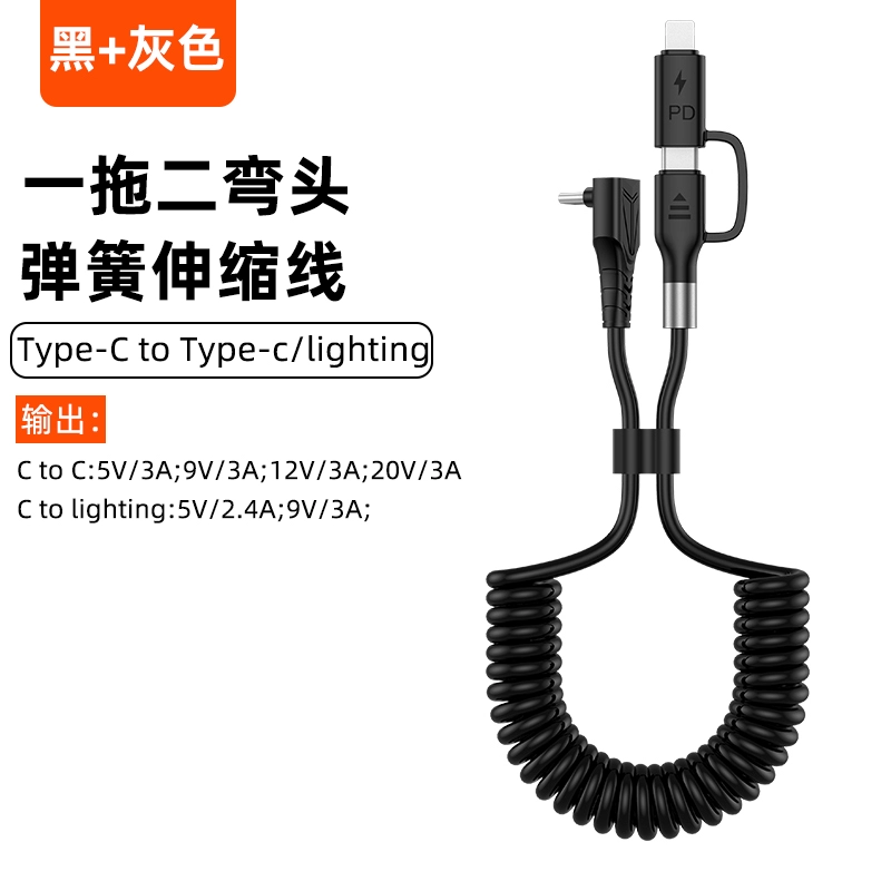 | nameOriginal | Double type c elbow to lightning spring telescopic car carplay data cable suitable for Huawei Apple iPhone navigation carlife screen projection PD fast charging cable |