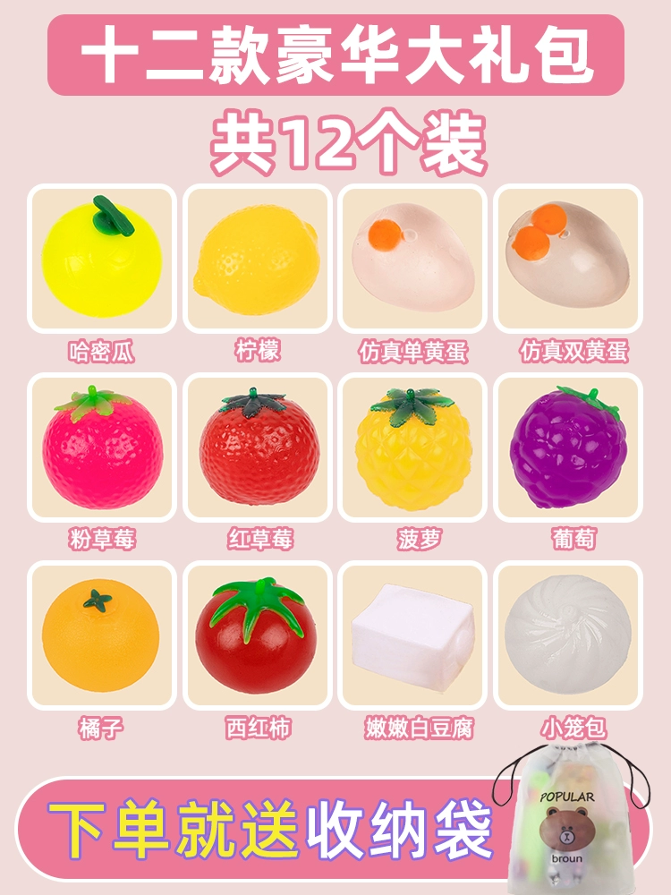 Double yolk egg pinch decompression toy decompression artifact strawberry buns vent ball children's food play egg water tofu