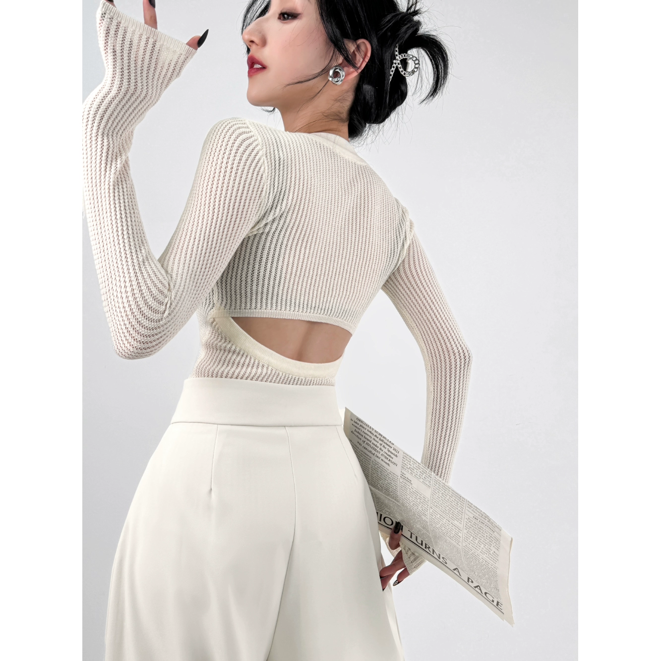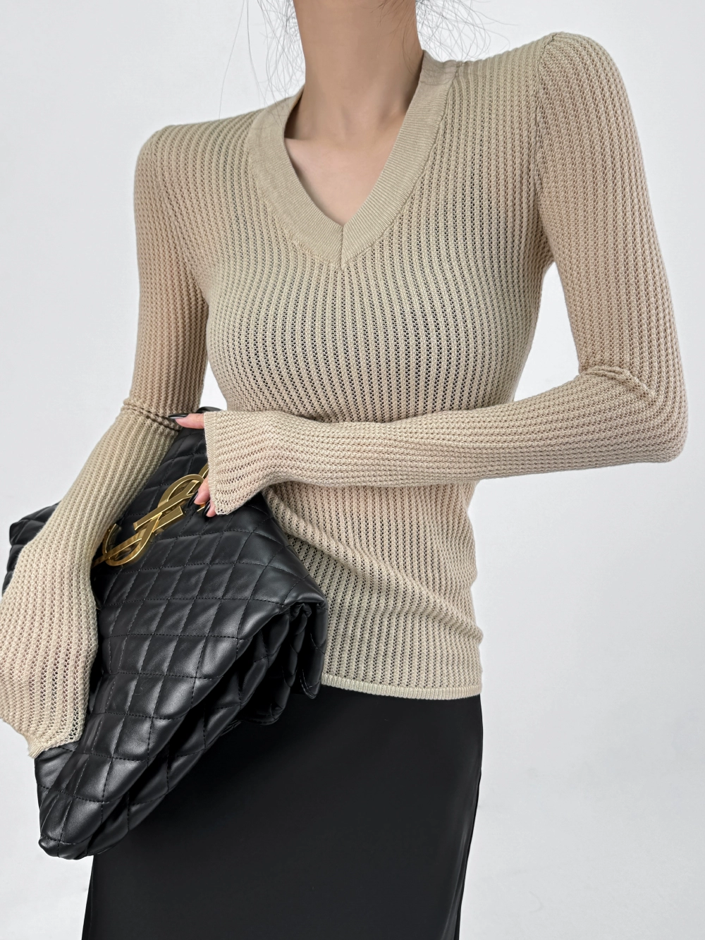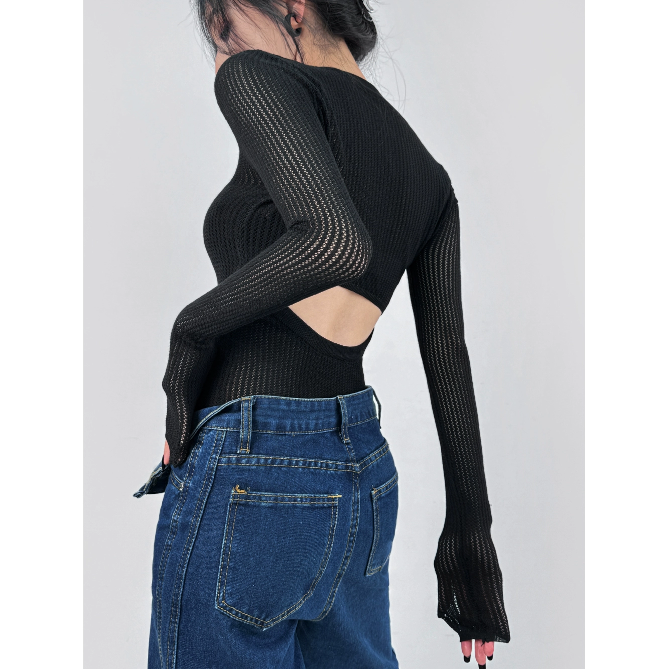 | nameOriginal | DOUBLE Z exposed waist v-neck mesh sweater top |
