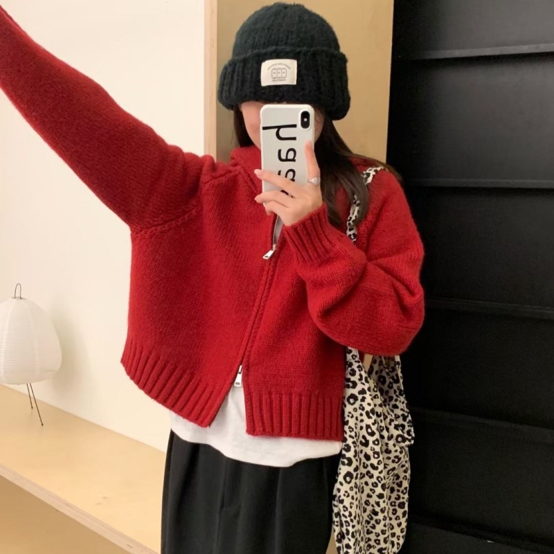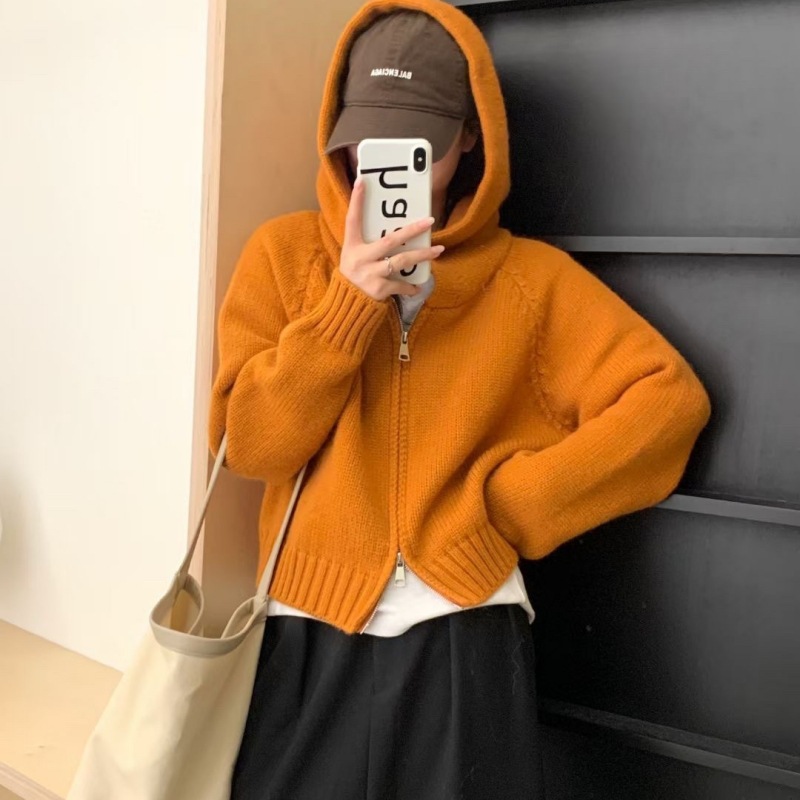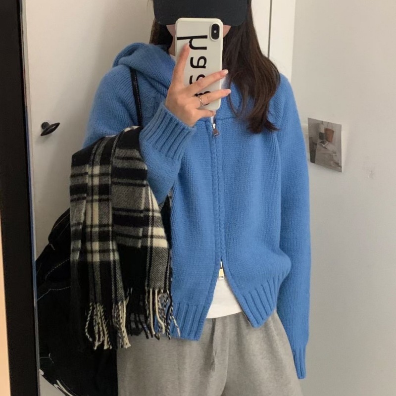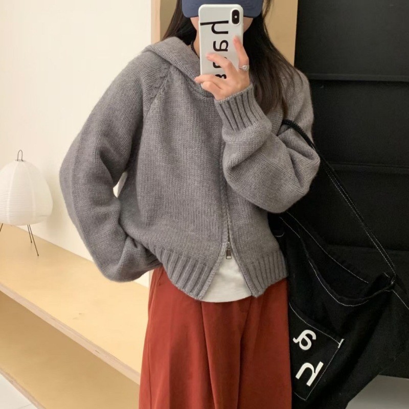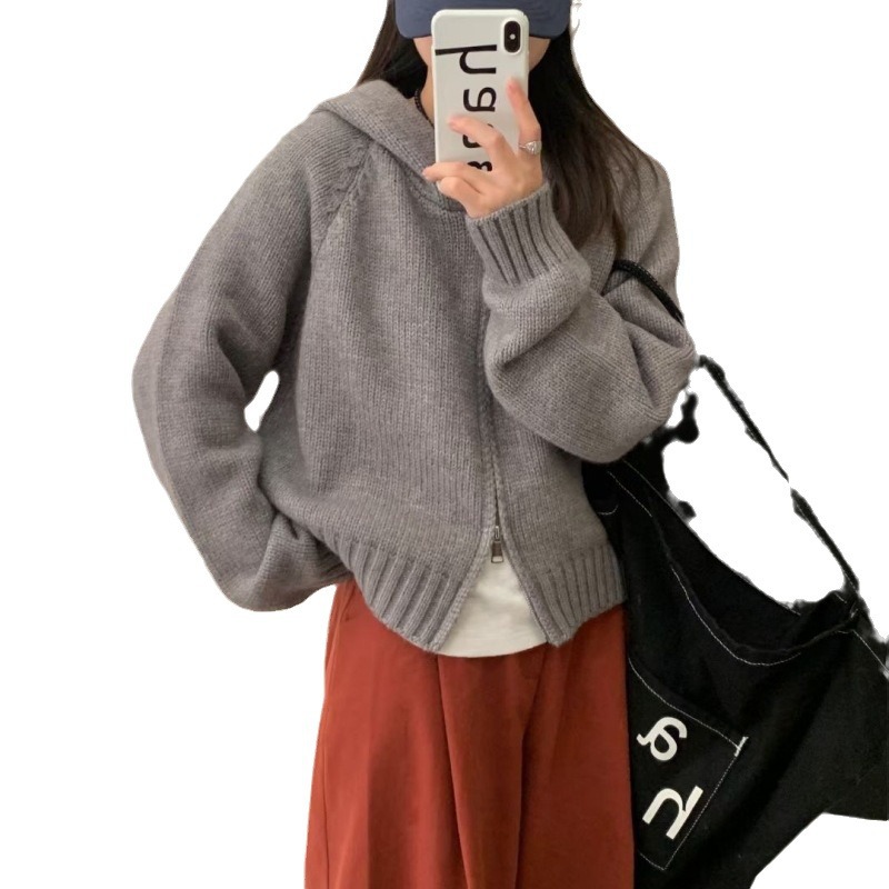 | nameOriginal | Double zipper hooded knitted sweater coat for women autumn and winter lazy style small design short knitted cardigan for women |