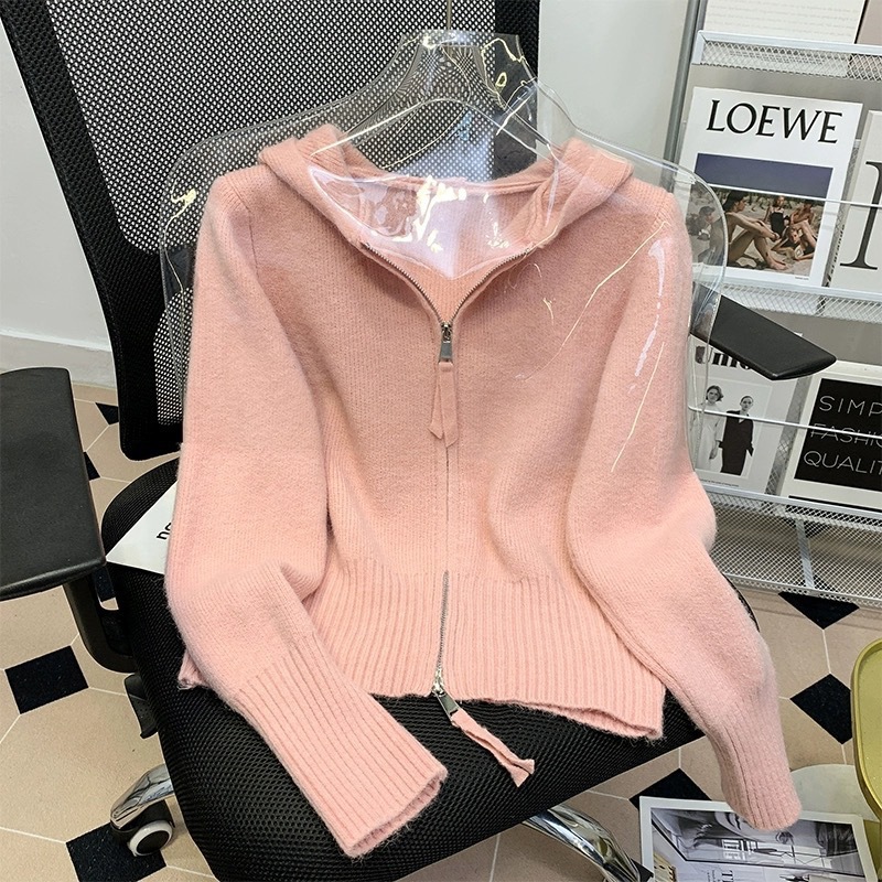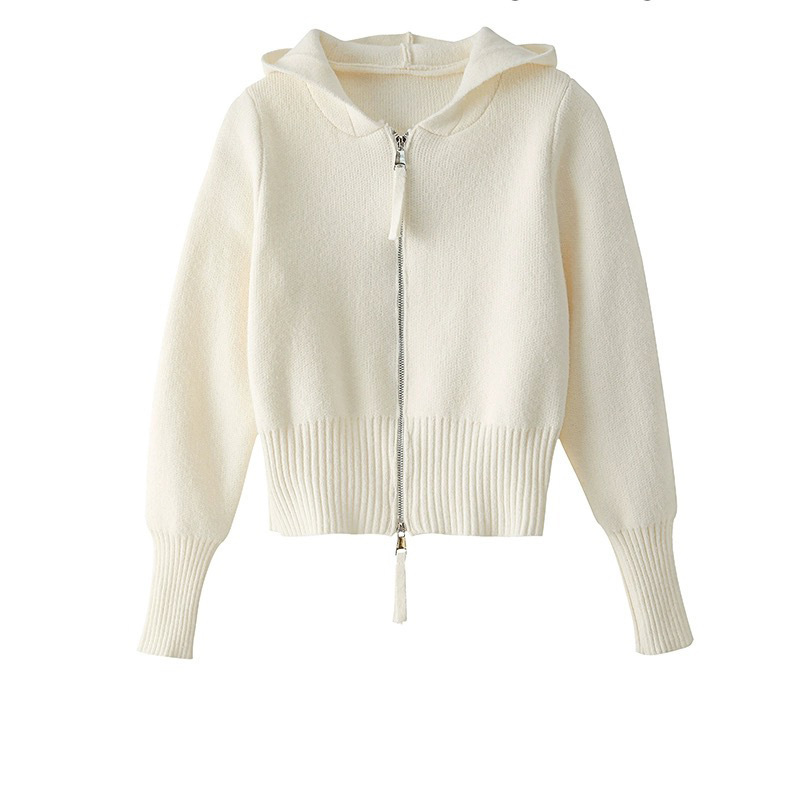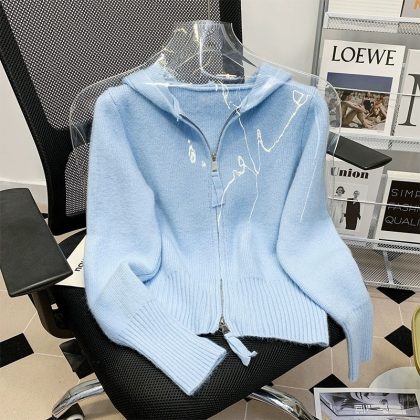 | nameOriginal | Double Zipper Hooded Sweater Coat Solid Color Sweater Gentle Style Soft Waxy 2024 New Short Slimming Top for Women |