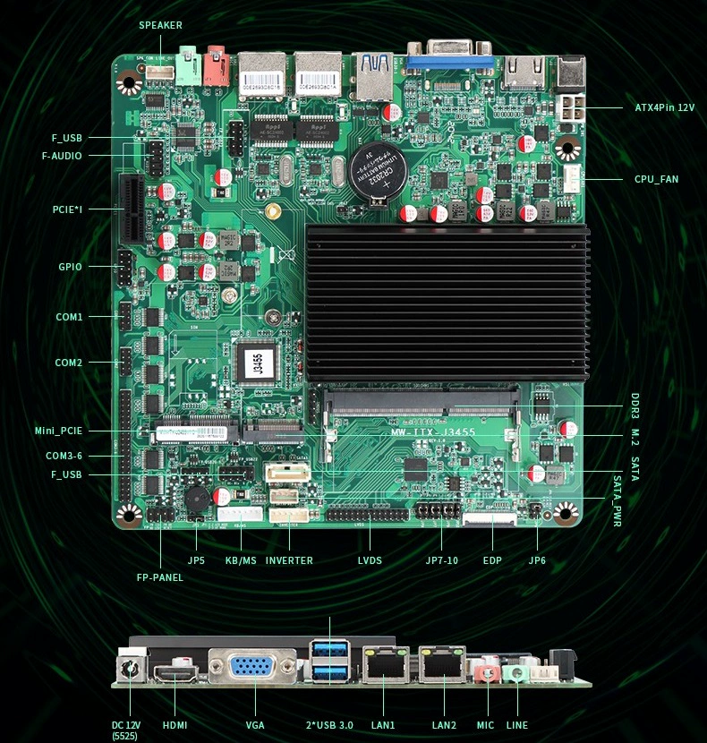 | nameOriginal | Douxi DX-J4125-6C2L quad-core mini industrial control motherboard fanless 6 com dual network card LVDS/PCIe |