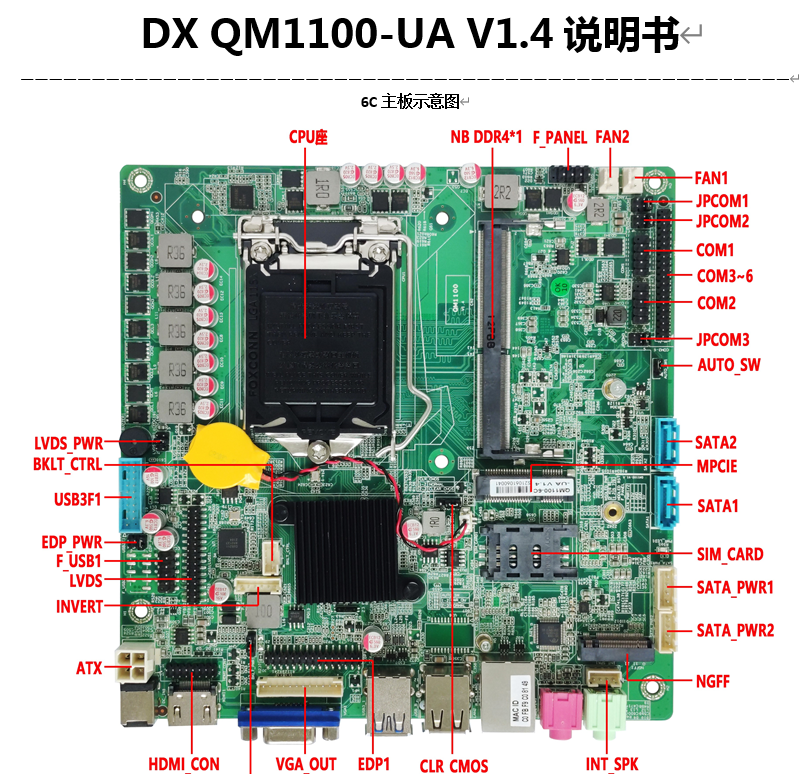 Douxi industrial control motherboard EMB-H110B dual network dual com dual HDMI/4K/PCIe/QM1100 replaces H110TN