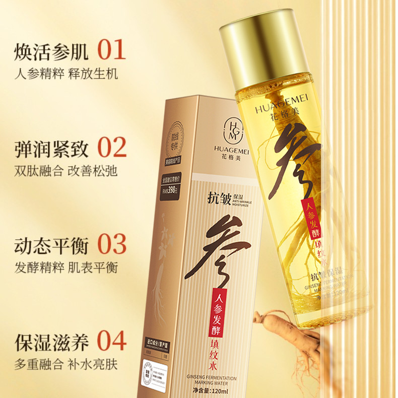 | nameOriginal | Douyin live broadcast ginseng Anti-Wrinkle Essence Toner filling firming fade fine lines hydrating ginseng filling water |