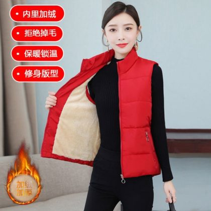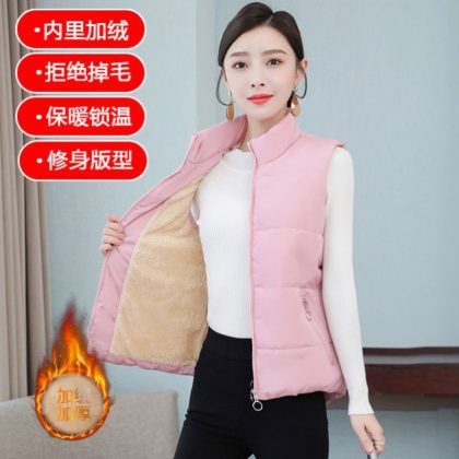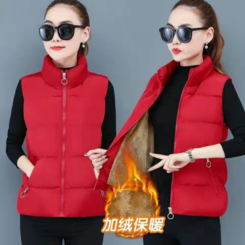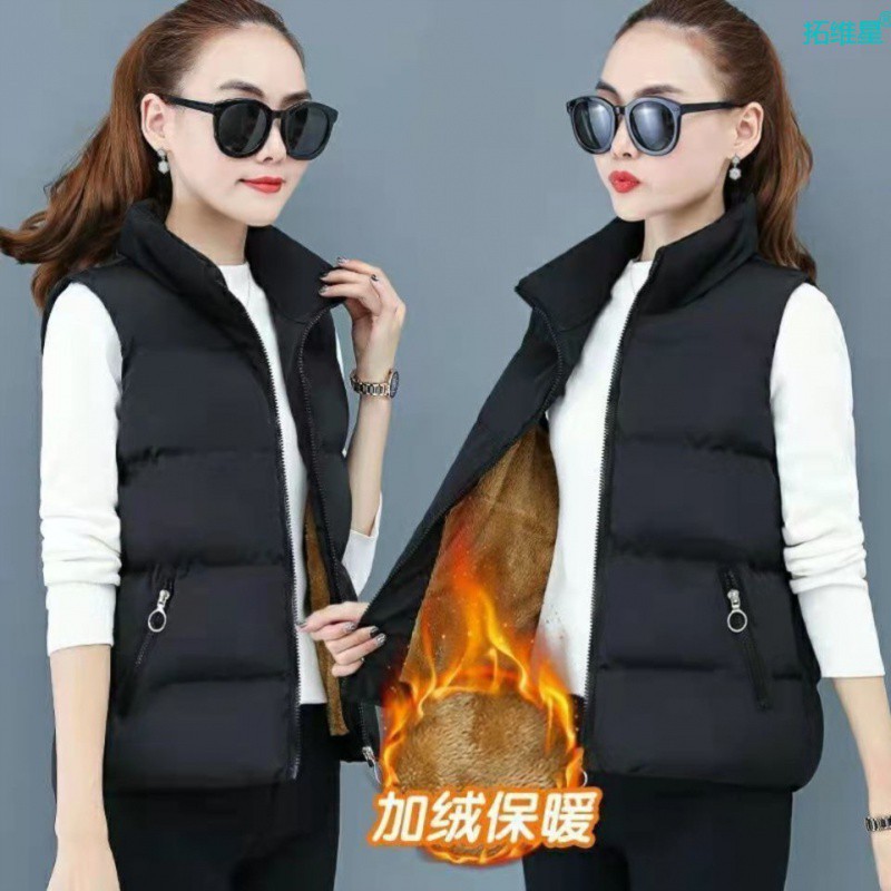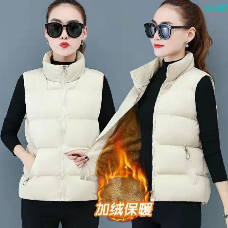 Down cotton vest ladies 2024 autumn and winter new Korean version of loose fleece-lined warm sleeveless waistcoat